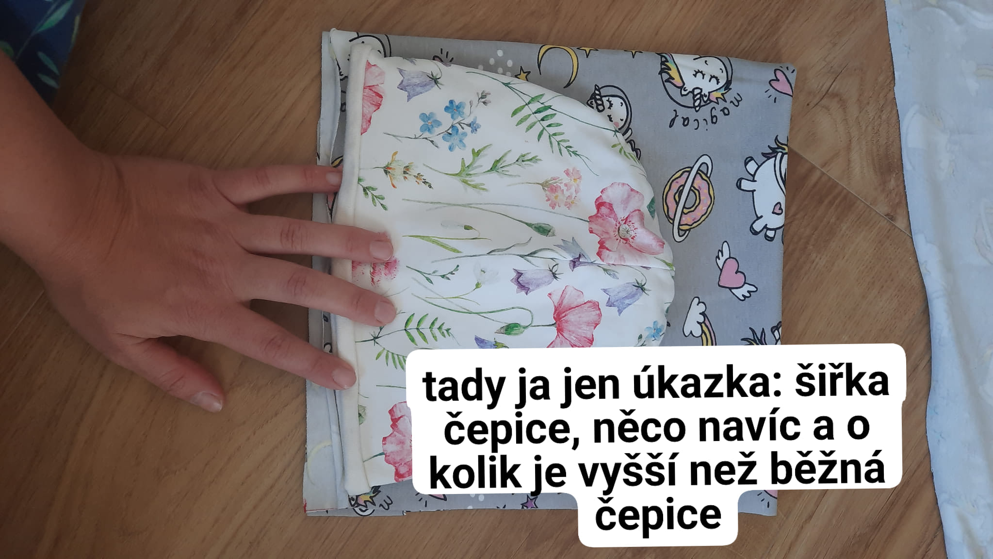 Běžná čepice je nižší než zvolená látka, protože nahoře hodně materiálu spotřebuje zatočení. čepice musí na hlavě dobře sedět, proto je asi o 2 cm menší než hlavička dítěte.