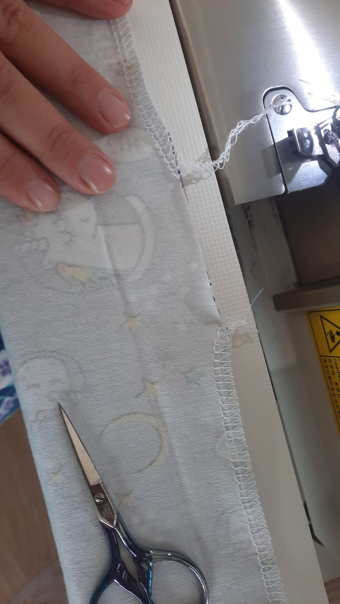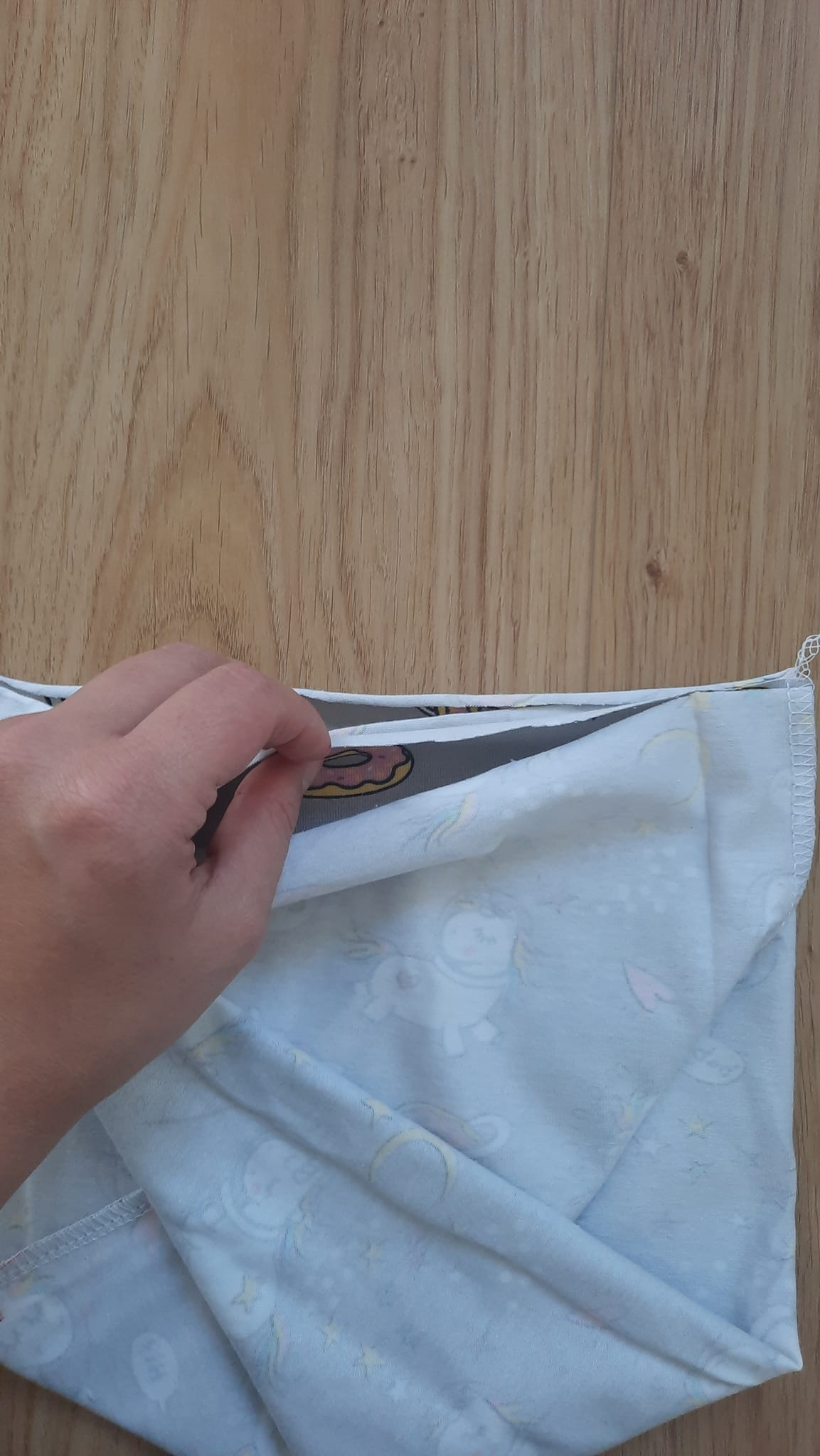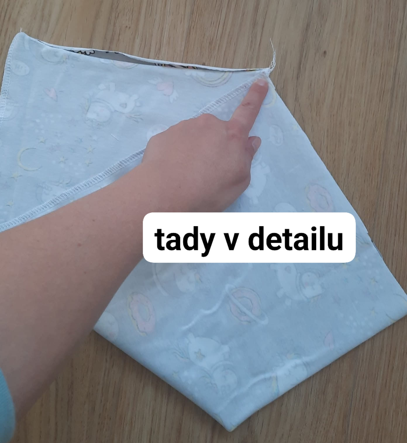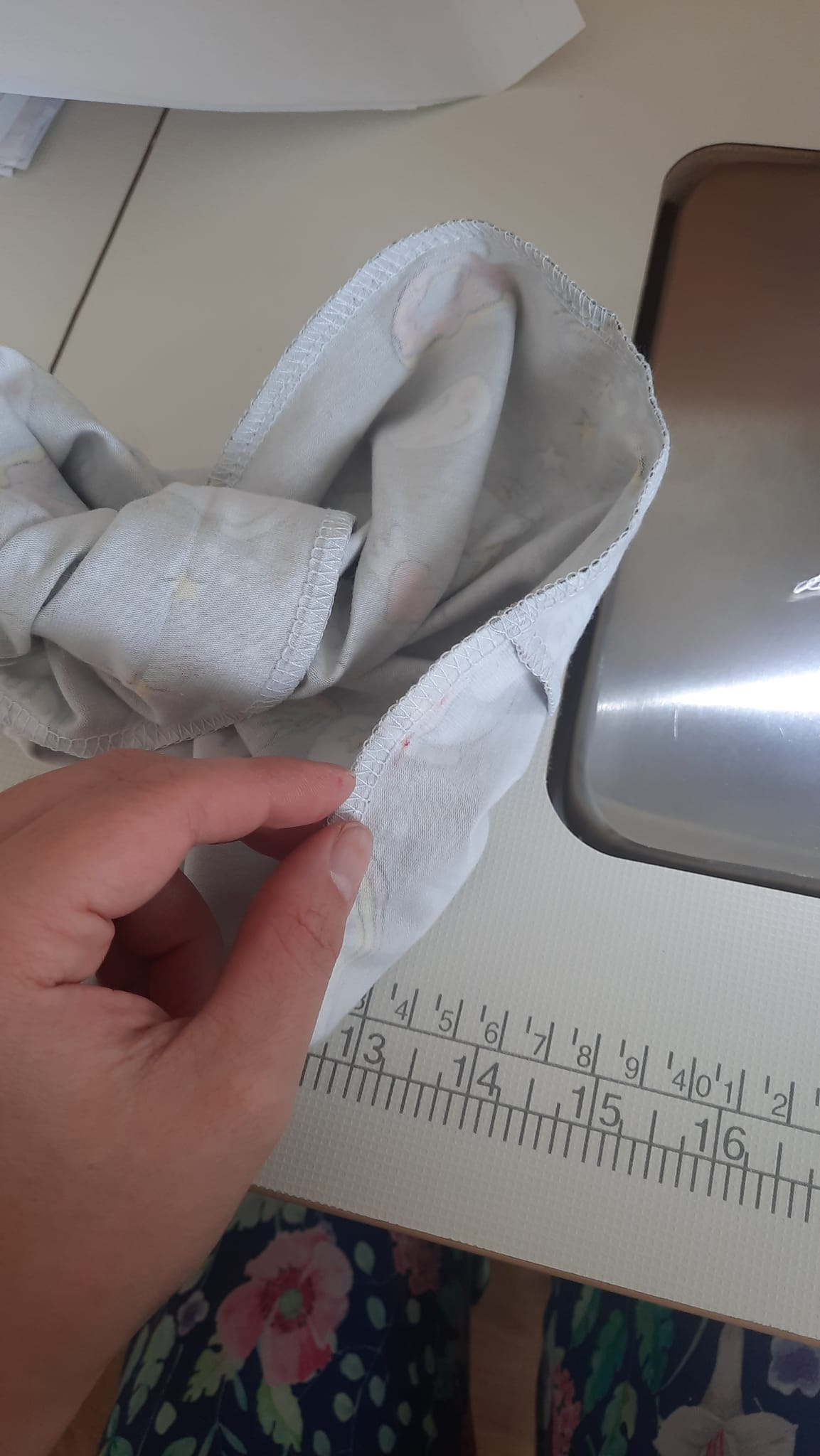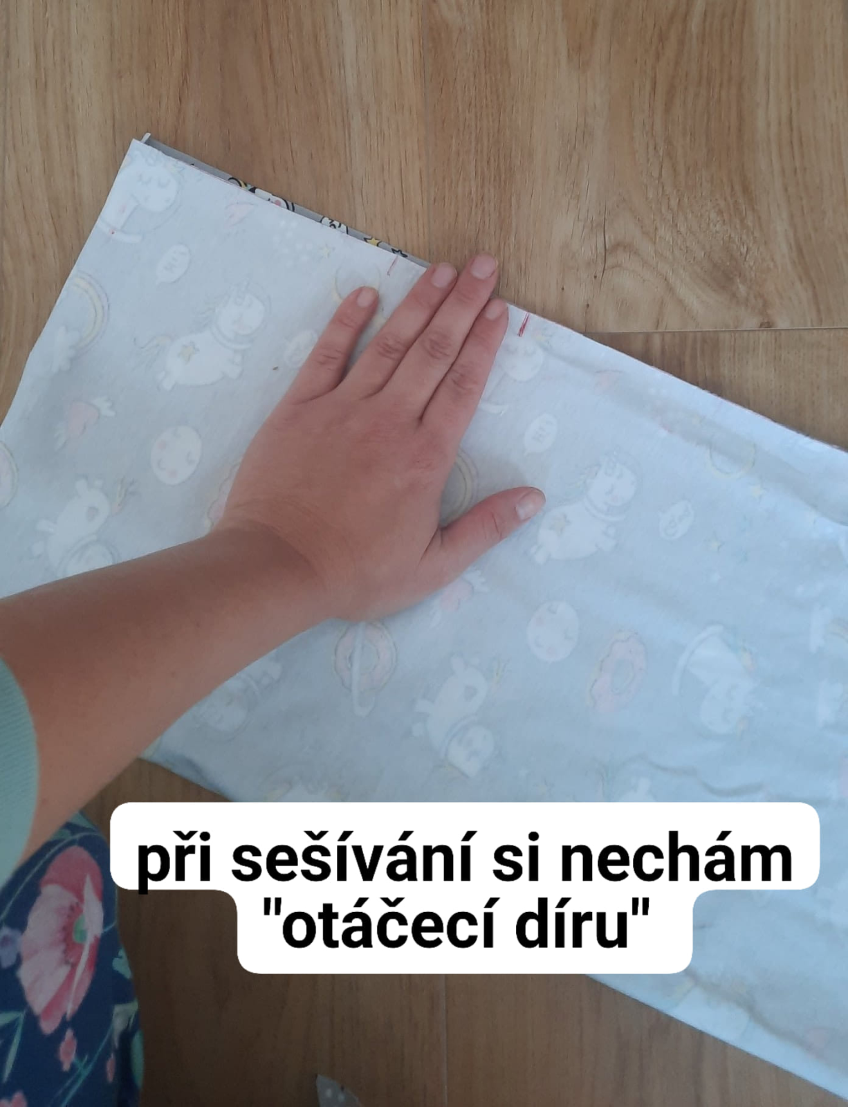 šev sešiji pružným stehem, mohu volit overlock, tříkroký steh nebo jemný entl. V boku si nechám díru pro točení čepice velkou asi na 4 prsty.