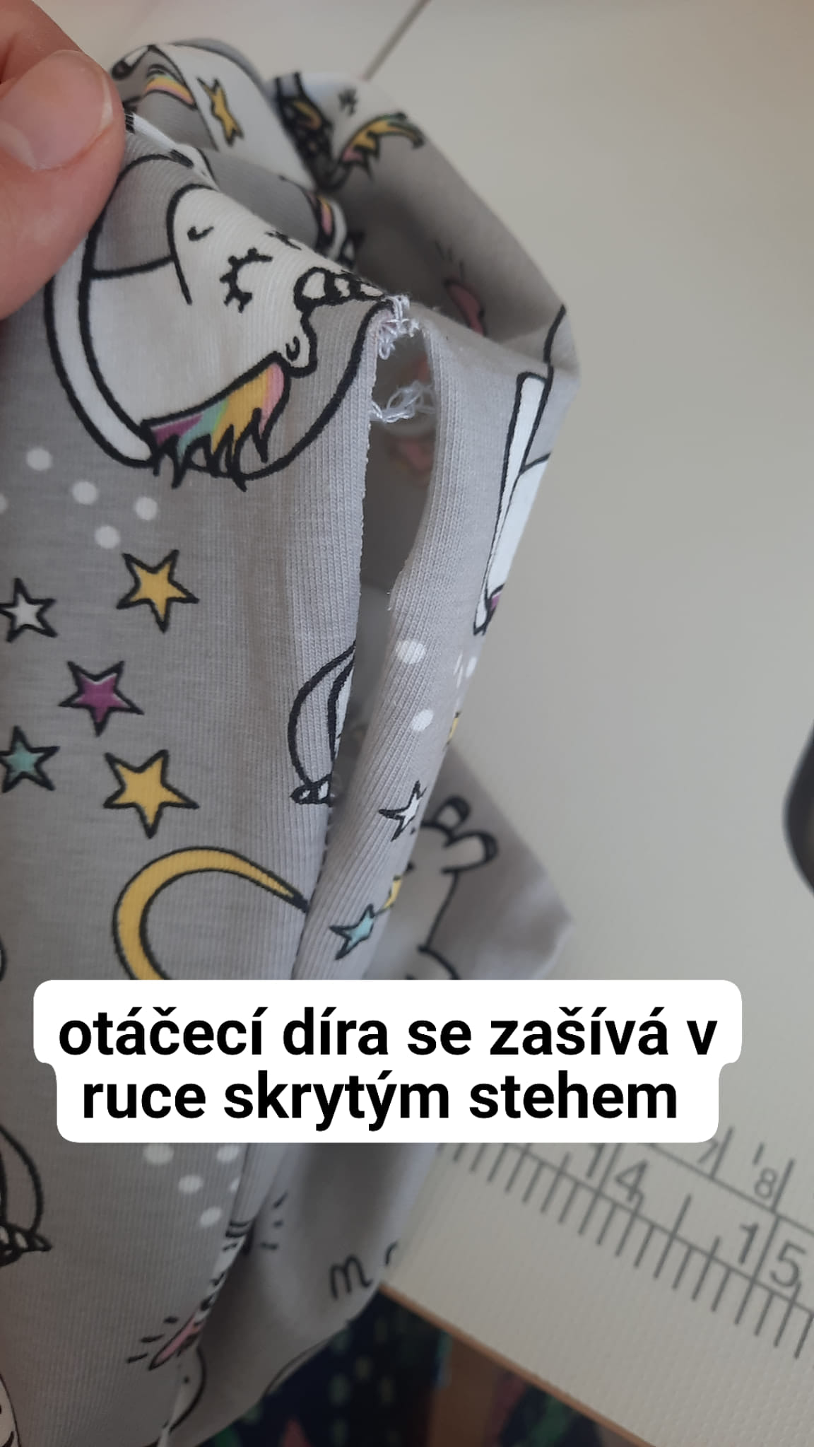 dírka pro otočení se zašívá skrytýmstehem