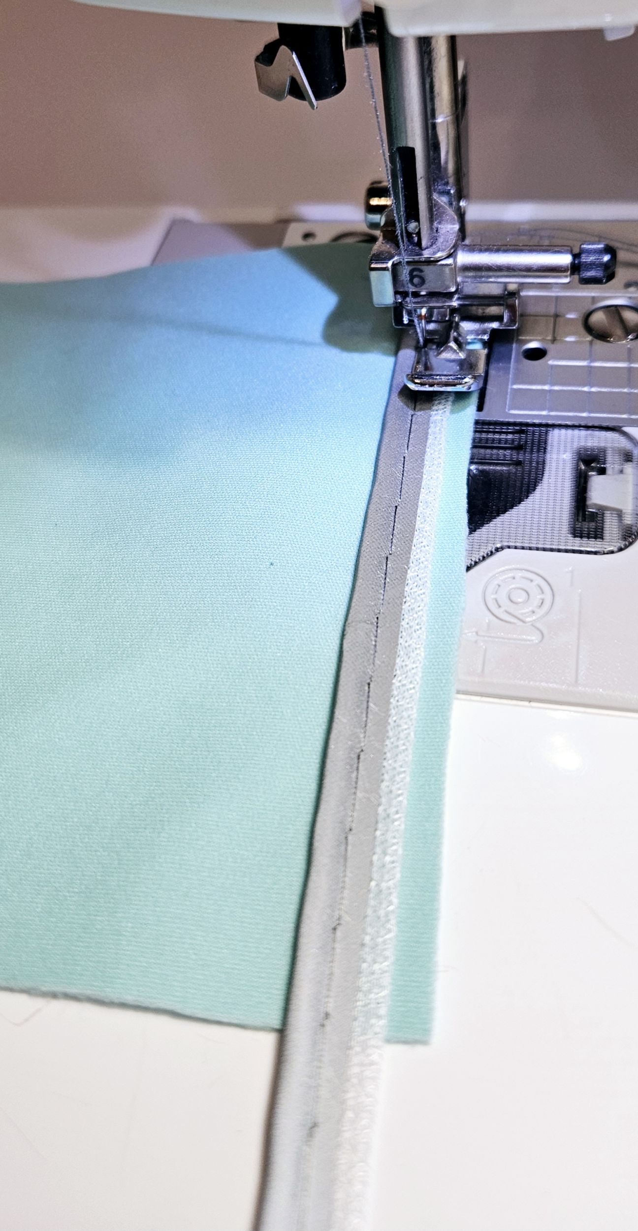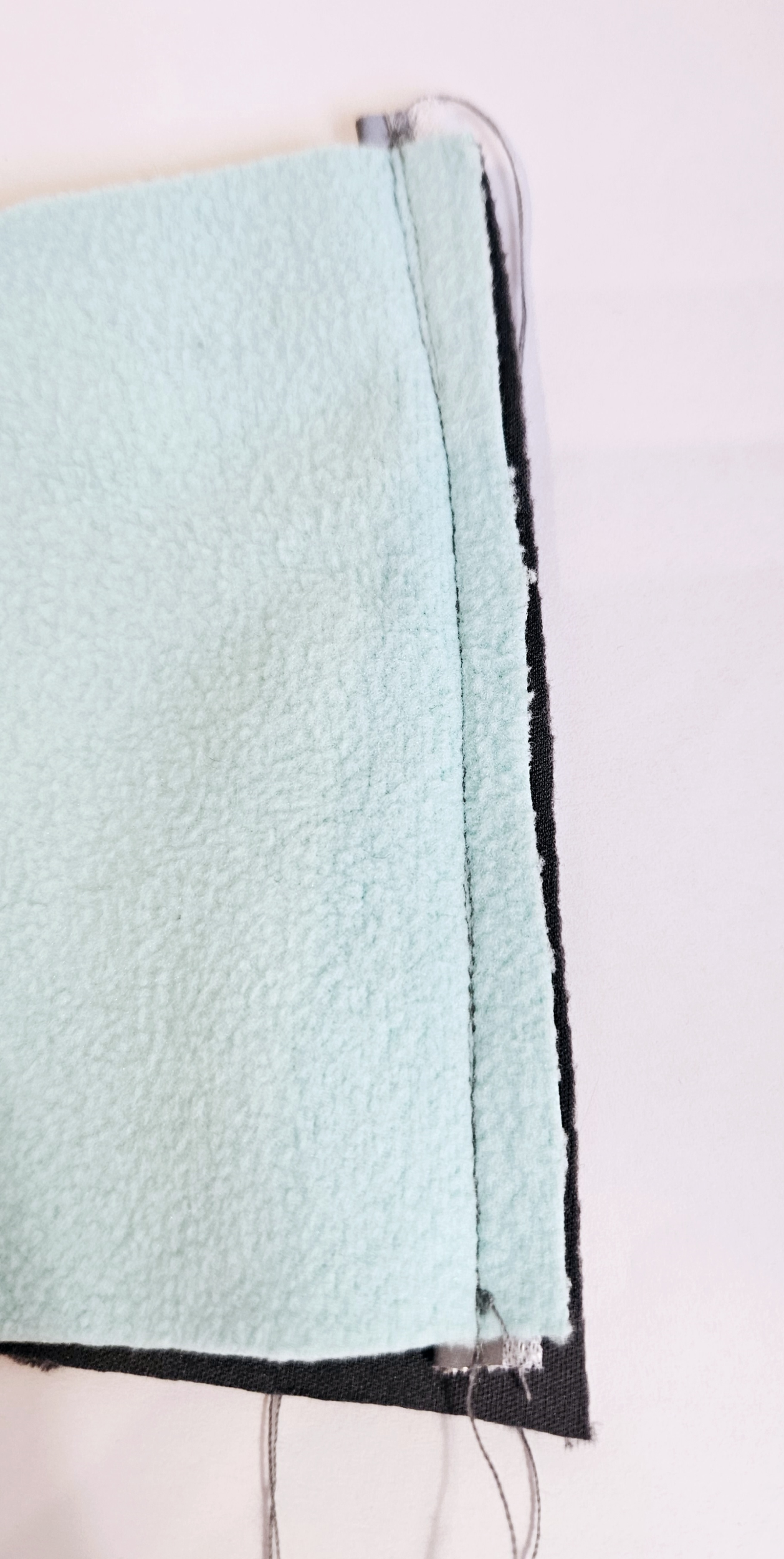 Šiji přesně po minulém šití. nebo o 1mm blíže k paspulce. Tak budu mít jistotu, že bude vidět pouze toto šití a nikoli předchozí zajišťovací šití.