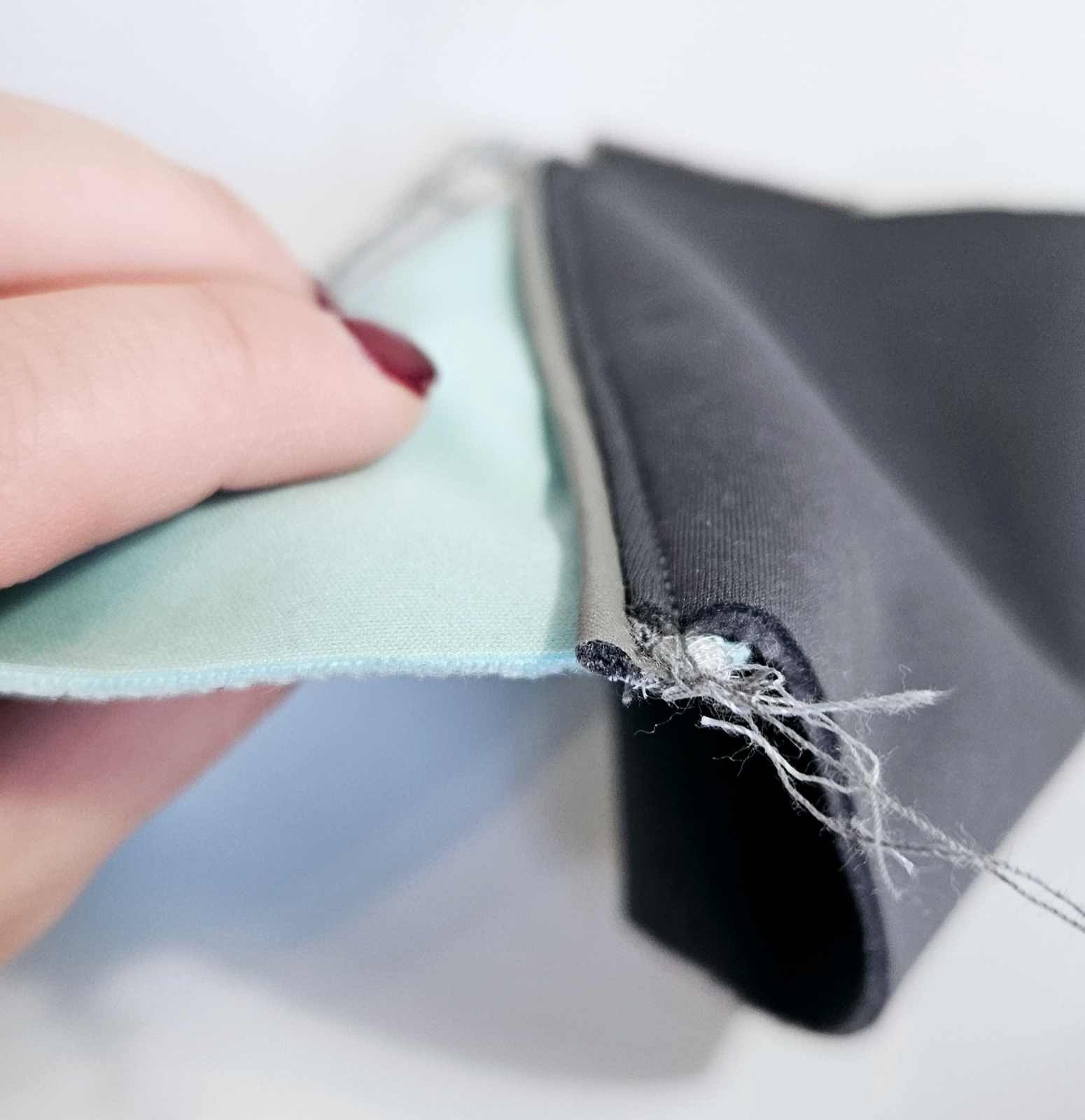 Hotové šití, 2 totožné linky na sobě.