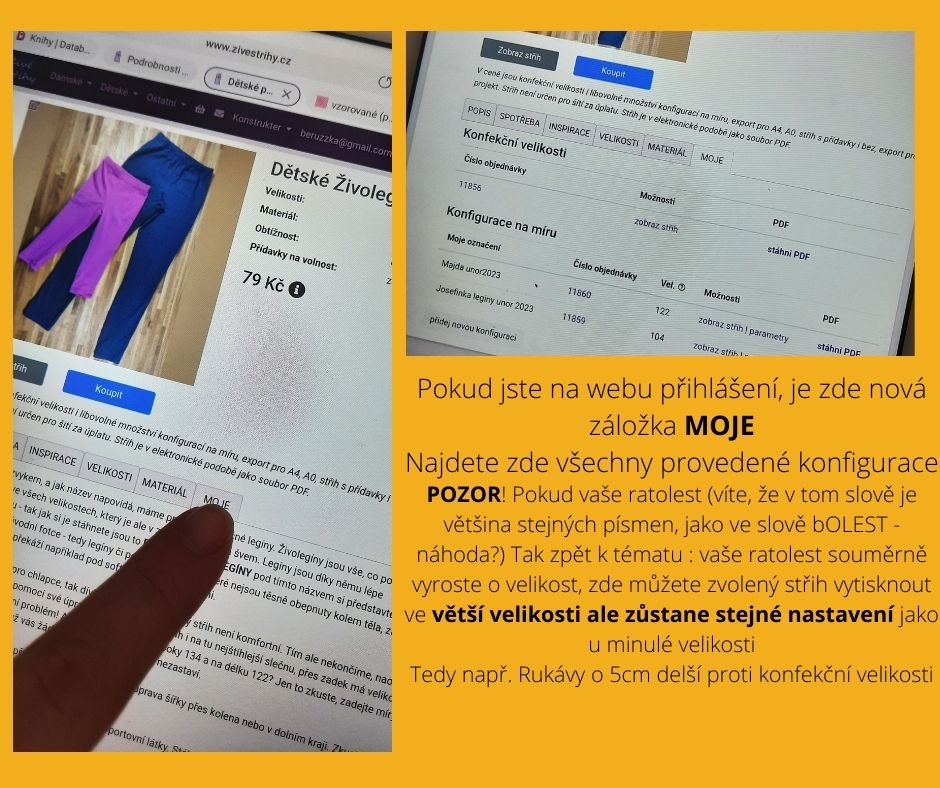 Po zakoupení střihu se v seznamu mých střihů objeví střih na legíny jako první.