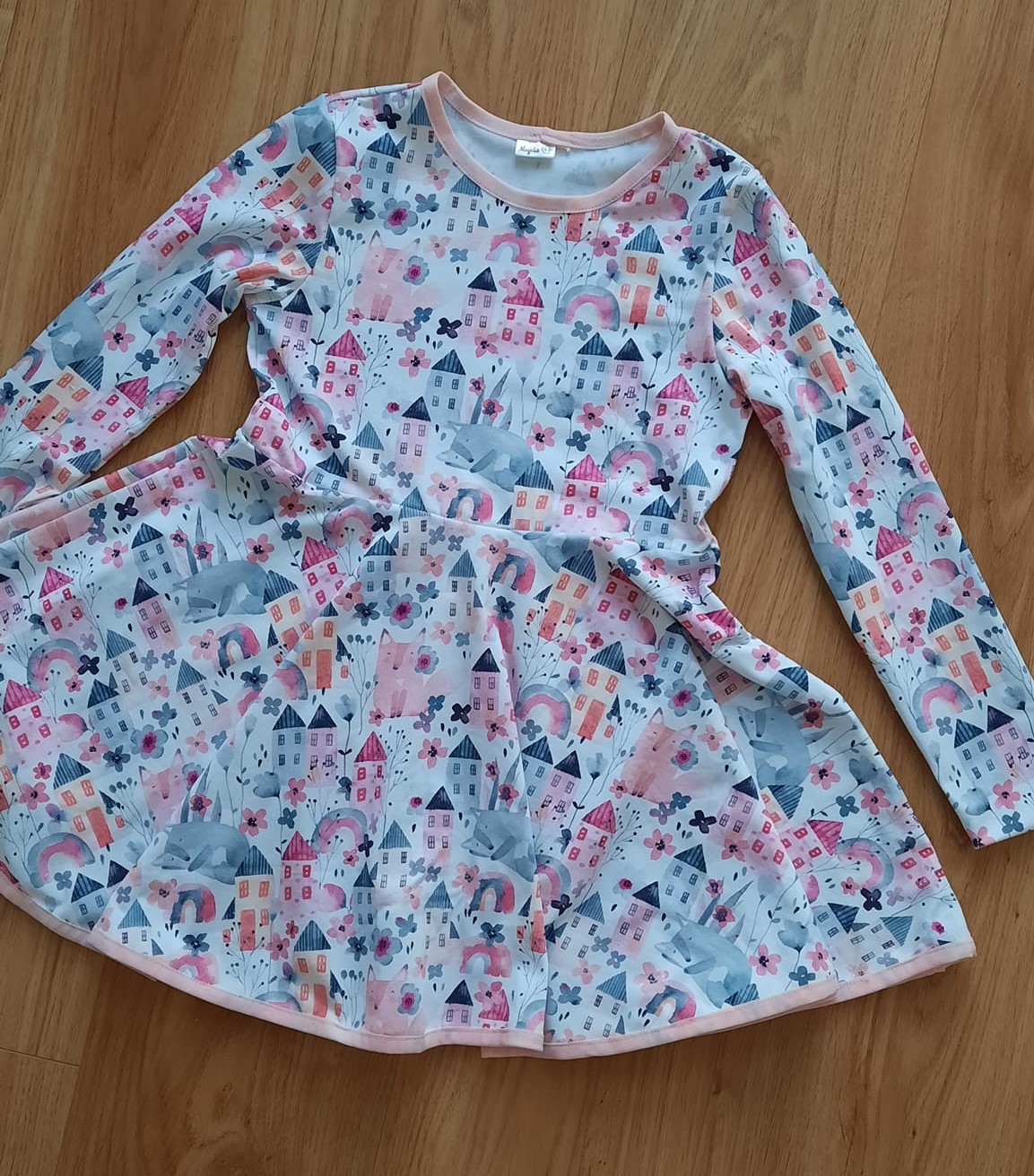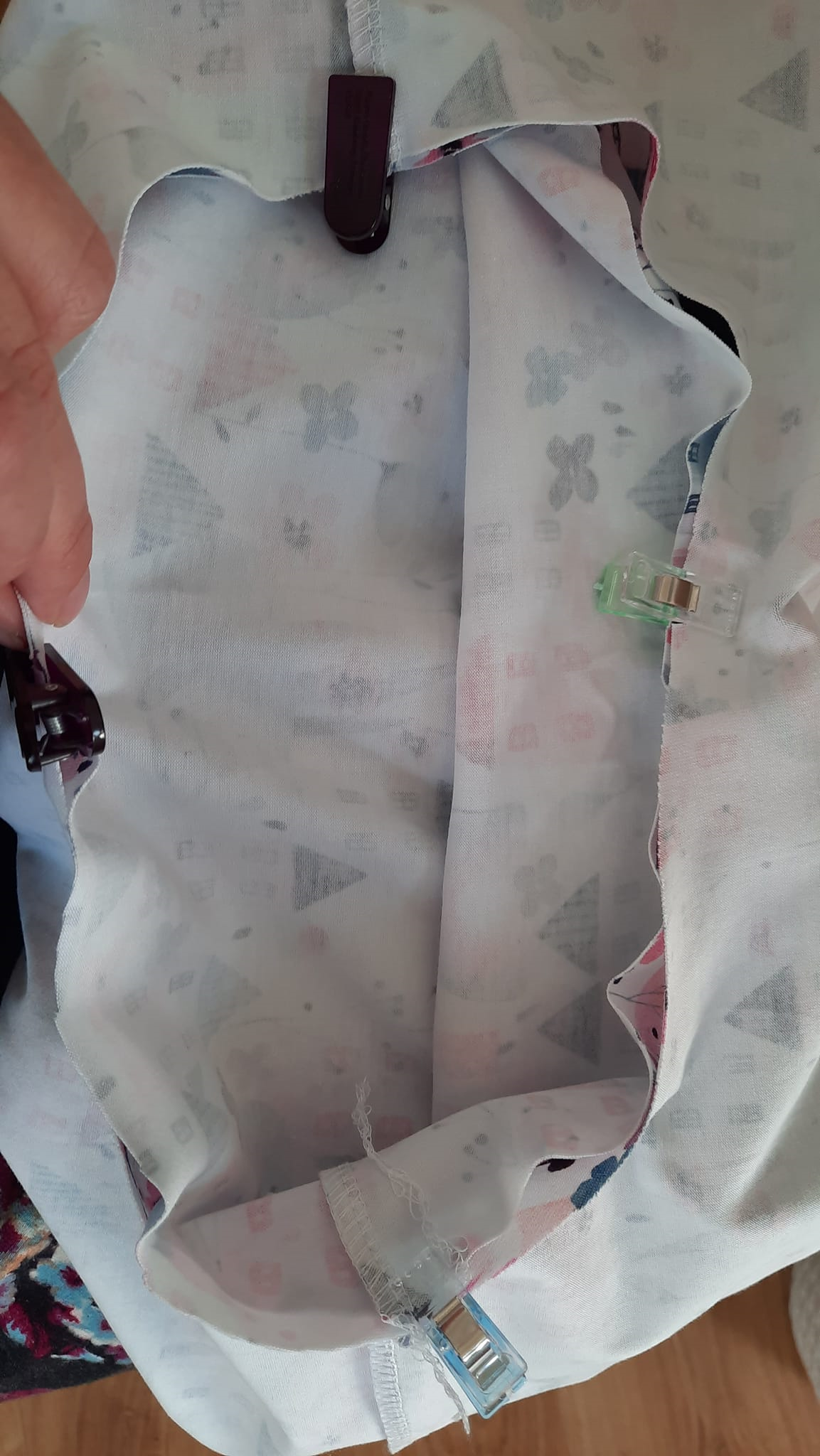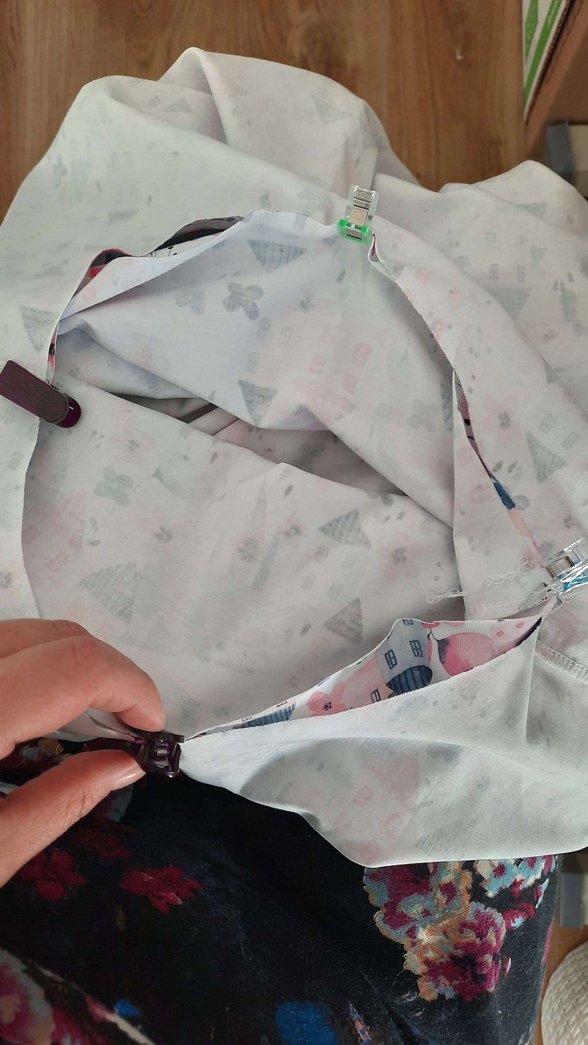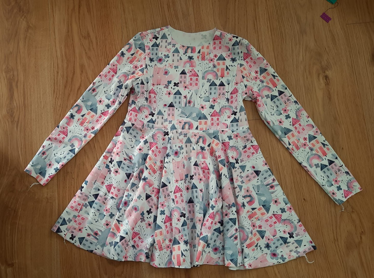 sešiji si boční díly sukně, živůtek mám sešitý dle návodu u životrika (ve zkratce: sešít náramenice, všít rukáv, sešít boční šev v jednom sledu s rukávem začistit délku rukávu a průkrčník), podrobný video návod najdete na webu u životrika.