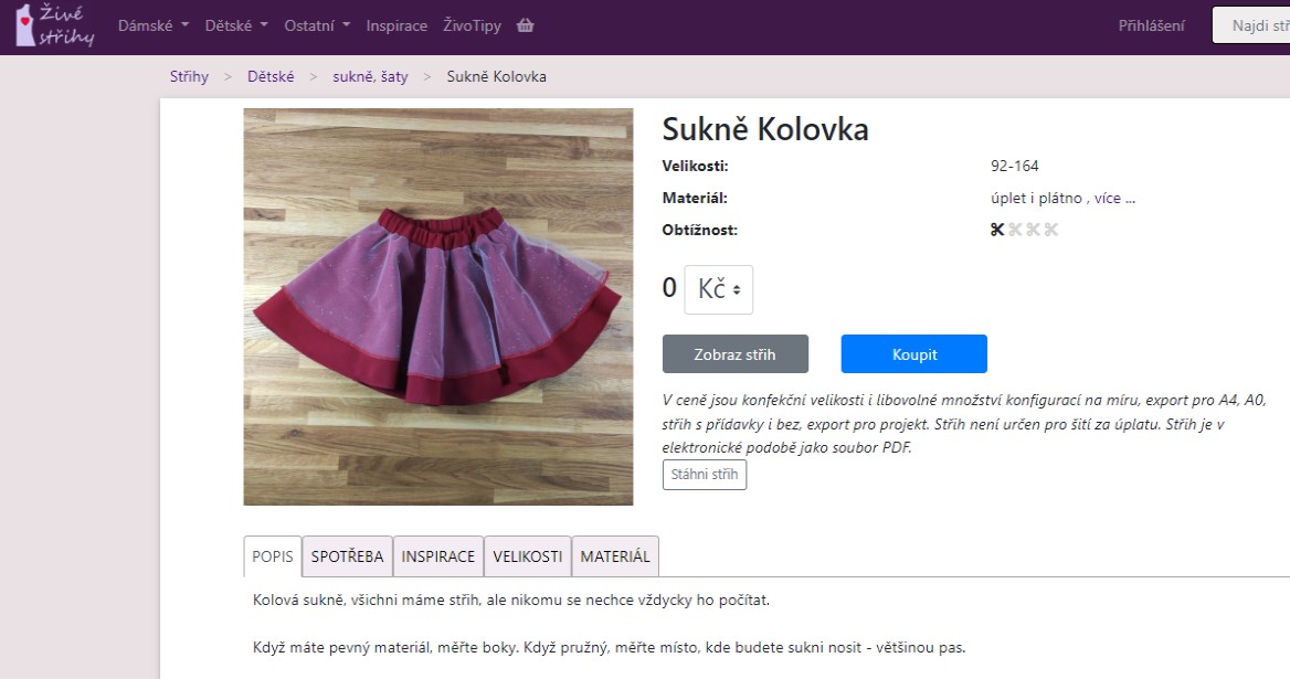 Druhou variantou je vystřihnout si šablonu od nás z webu. Zdarma si můžete stáhnout střih na sukni