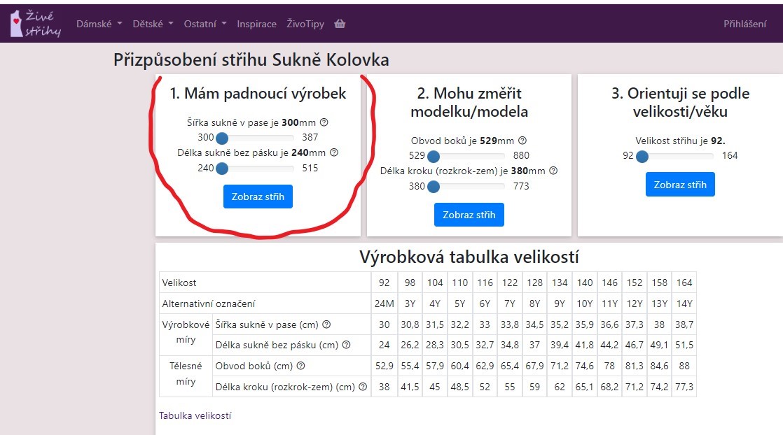 Mohu použít výpočet pro kolovou sukni z webu, například pokud zadáte - wikina kruh. obvod pasu který zadávám je o 4cm menší. Pas kolové sukně se totiž vytahuje a pokud tady dám přesnou míru bude pak v živůtku moc velký.