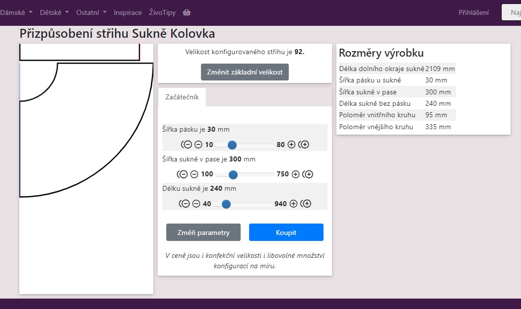 Zadáte obvod pasu (zde opět prosím zadejte o 4 cm menší a délku sukně)