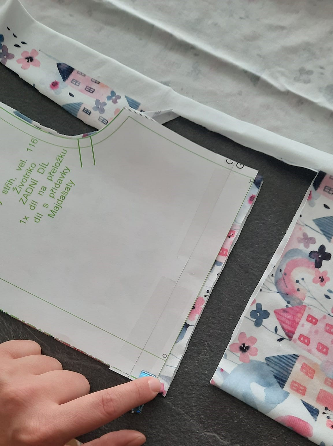 teď položím sukni lícem a líc živůtku značky a švy na sebe