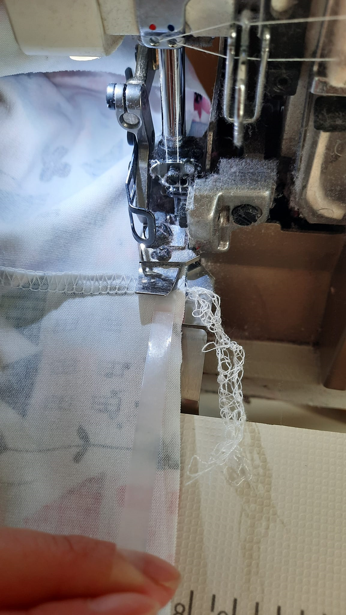 Do pasu všívám lastin, běžně ho koupíte v galaterii. Nemusíte brát silný, stačí 0.7mm, lastin vám podrží pas před vytahováním, bez něj by se pasová linie po pár nošení mohla vytáhnout.