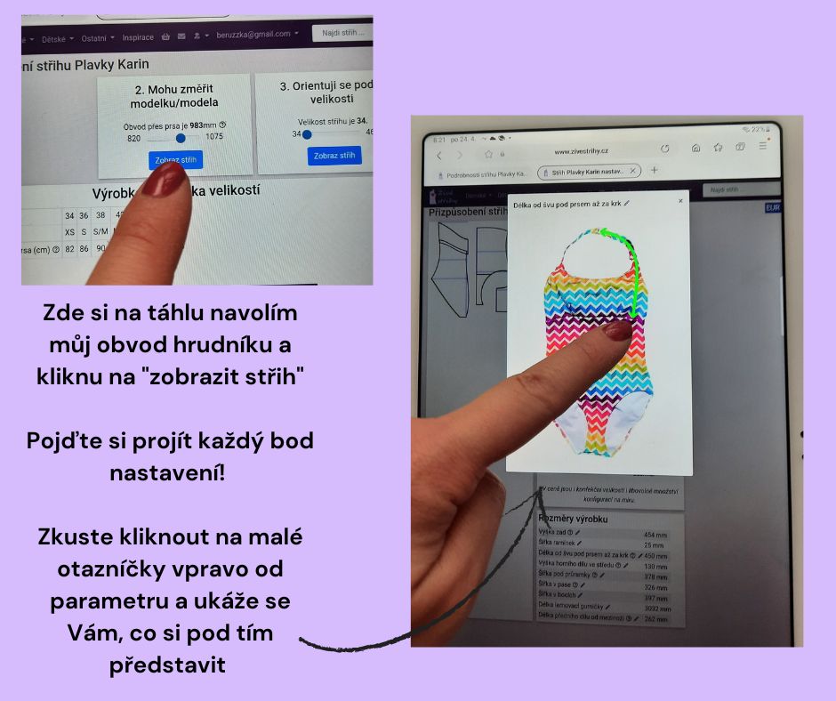 Zde si na táhlu navolím můj obvod hrudníku a kliknu na "zobrazit střih"