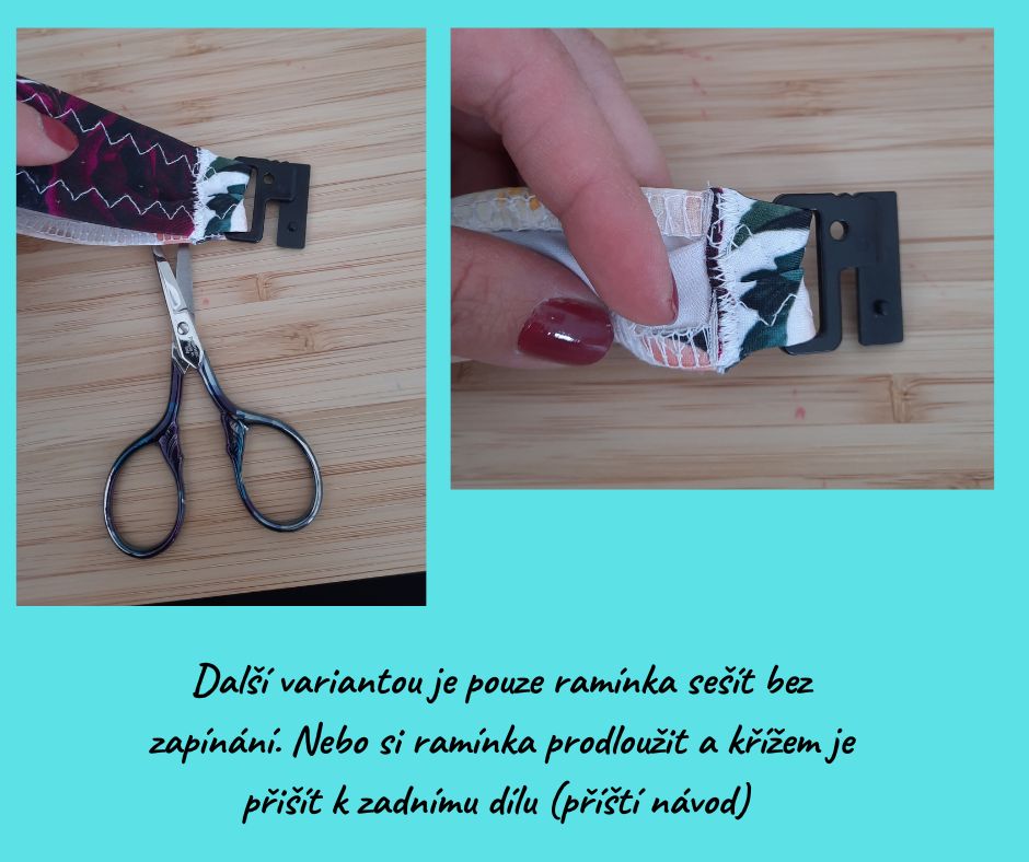 Pak jsem dojela na konec, zapošila a až po přišití jsem těsně za švem přebytek ramínka ustřihla.