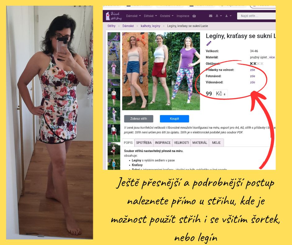 Ještě přesnější a podrobnější postup naleznete přímo u střihu, kde je možnost použít střih i se všitím šortek, nebo legín