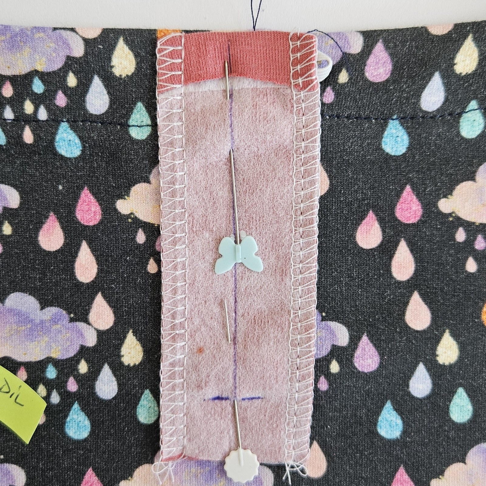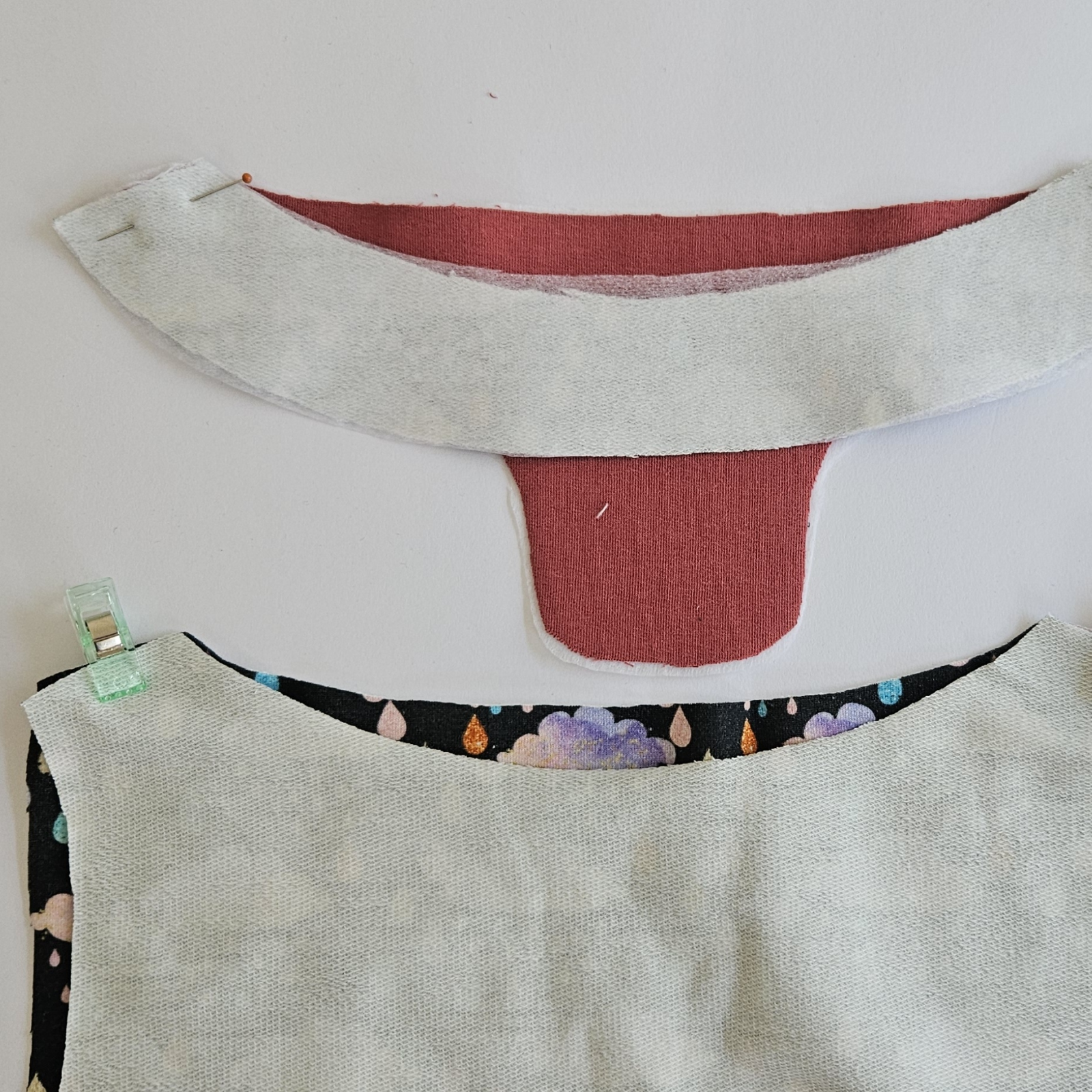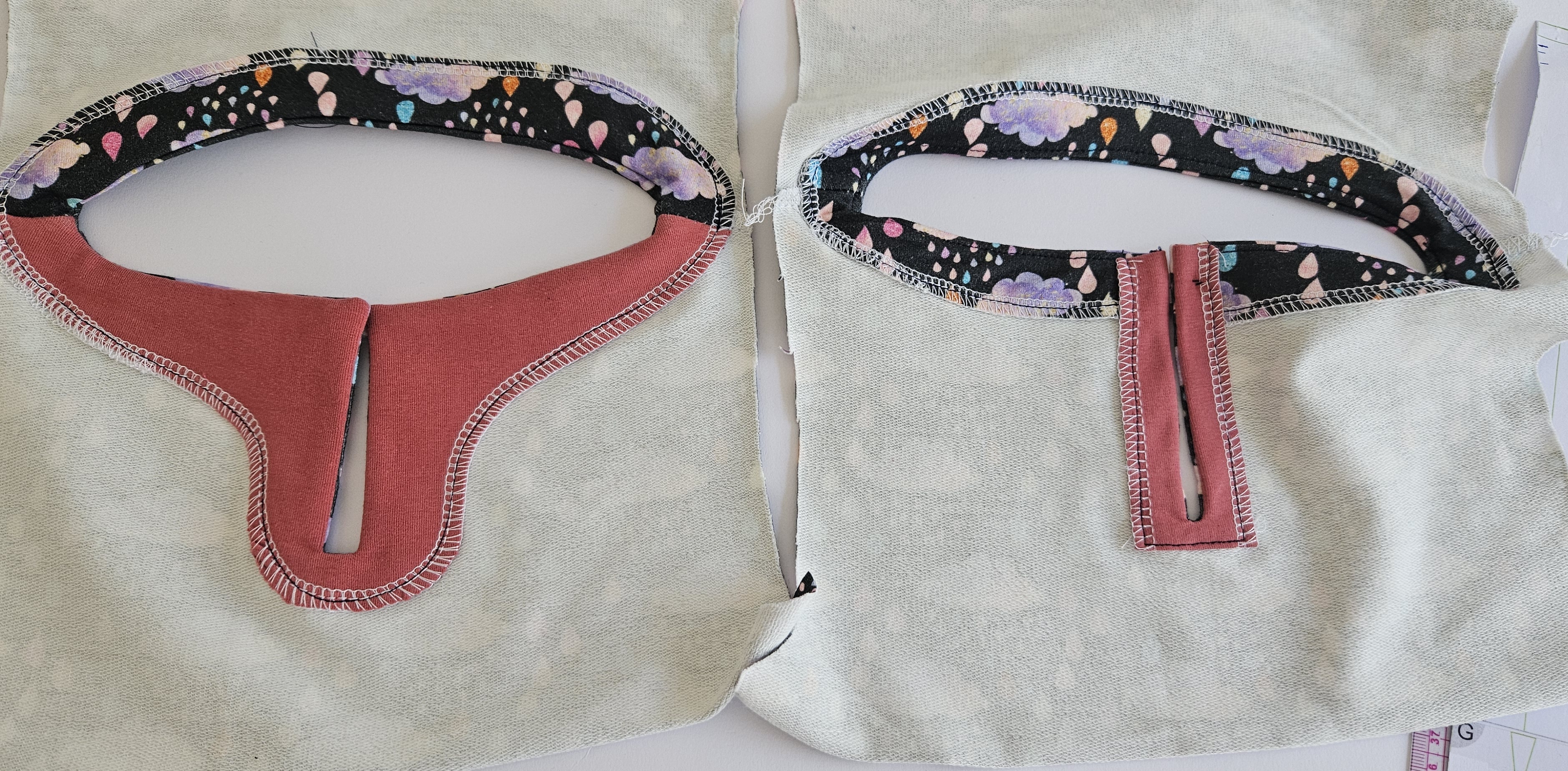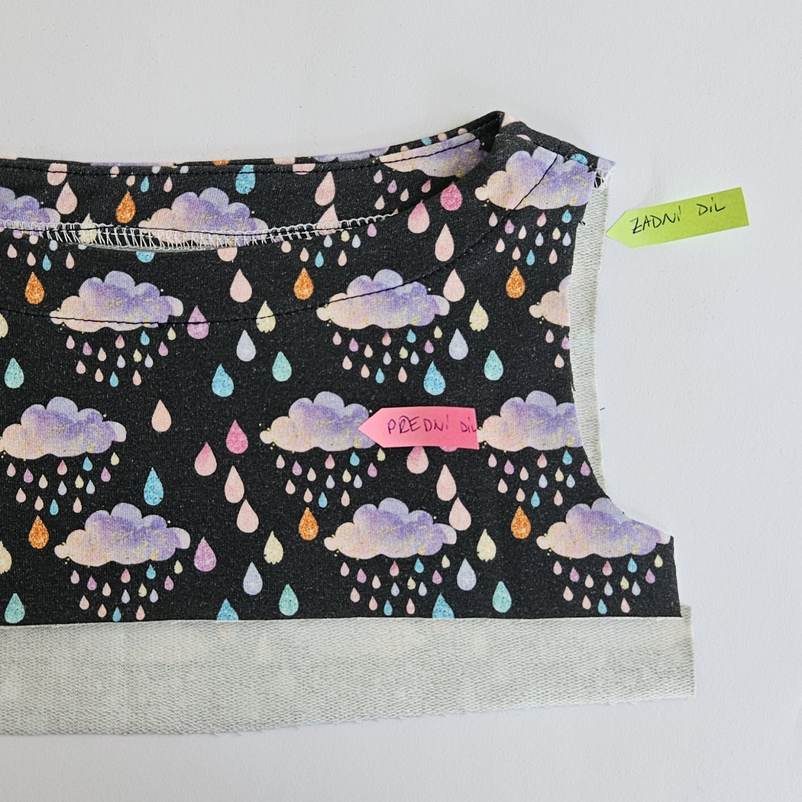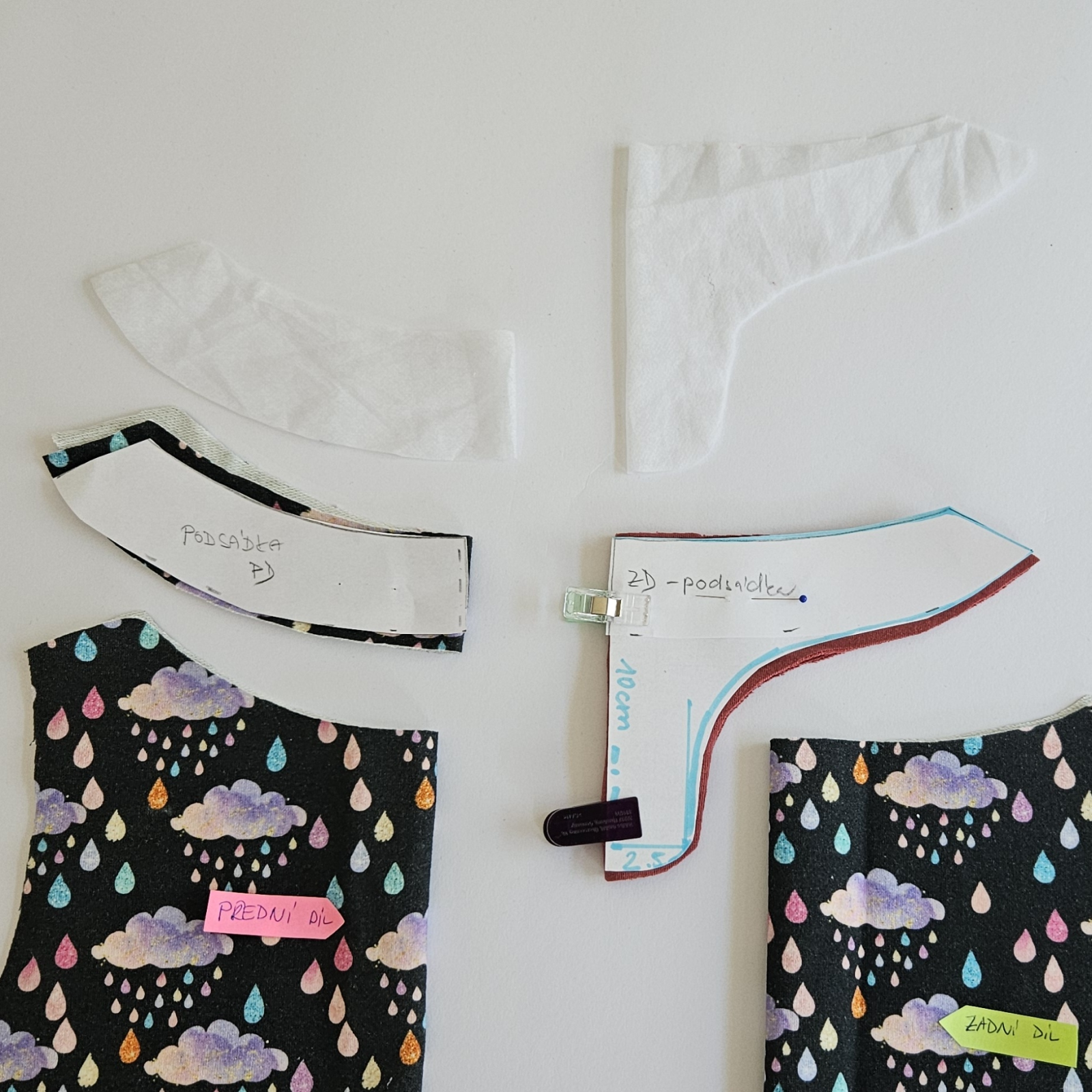 Díly podžehlím vlizelínem a pak sešiji ramenní švy na dílech i podsádce