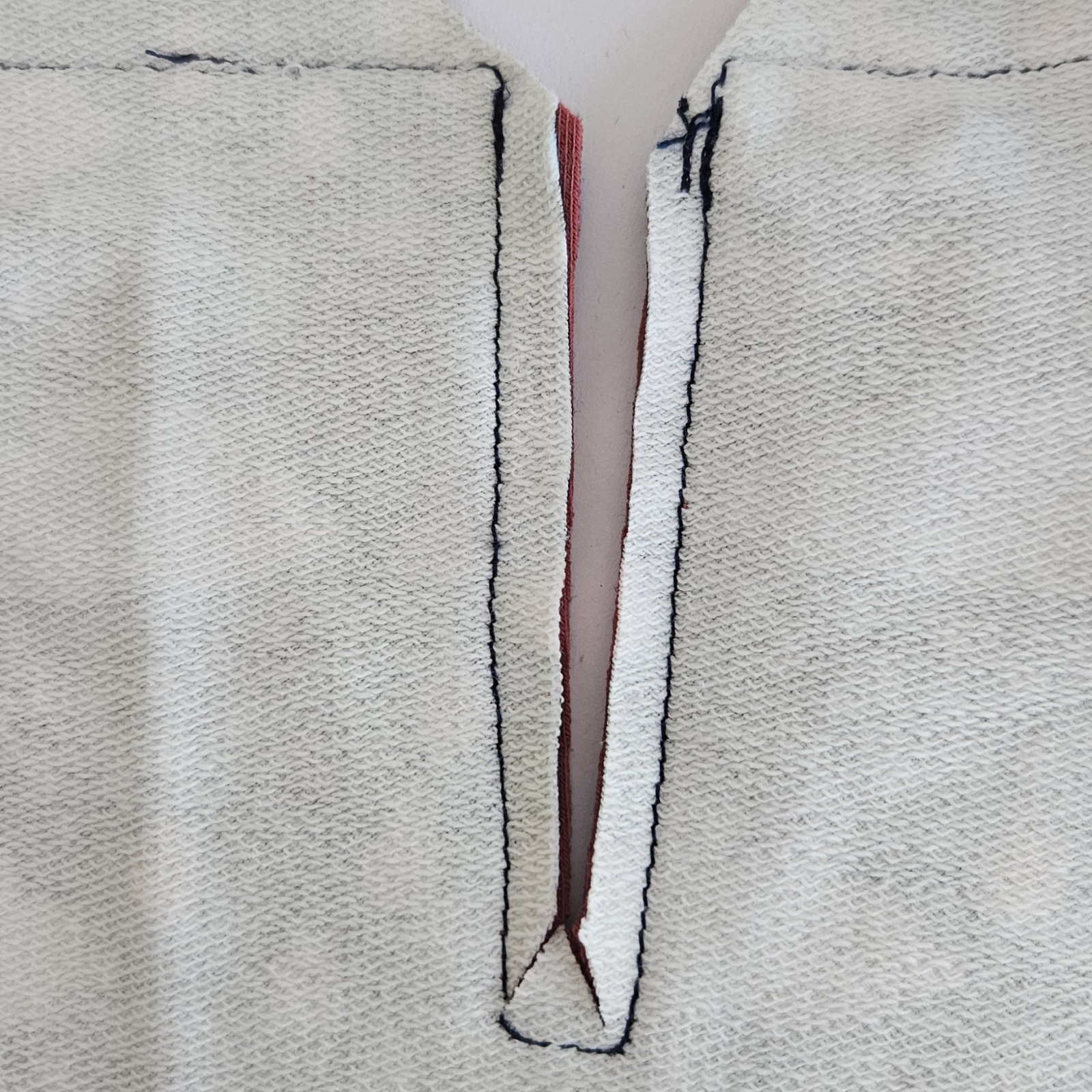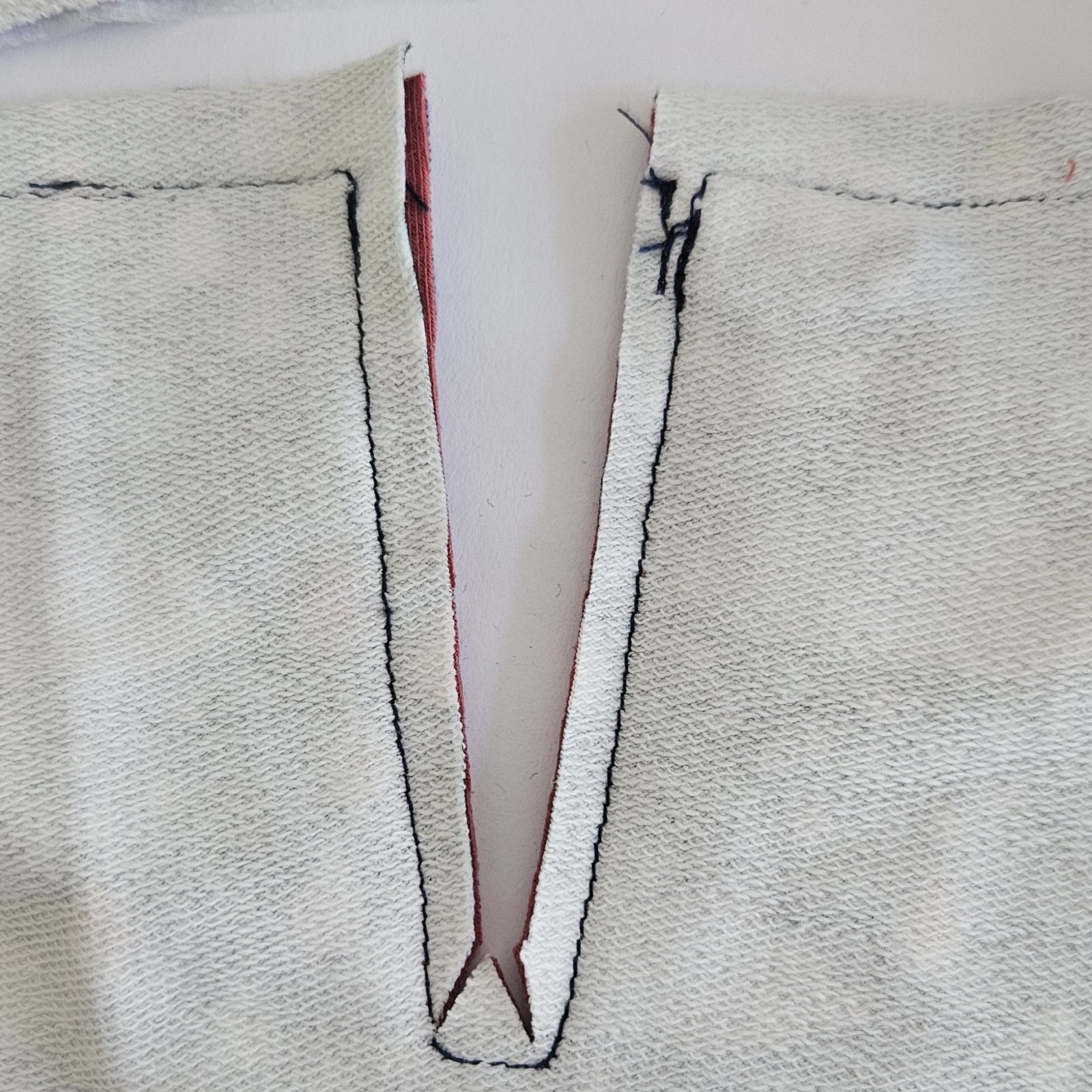 průkrčník mám ušitý, v dolním kraji rozparku použiji drobný steh, aby šití lépe drželo a šlo mi ted dobře nastřihnout do růžků. Sestřihnu i vrchní strany do kosa aby šel otočit a vymnout růžek.
