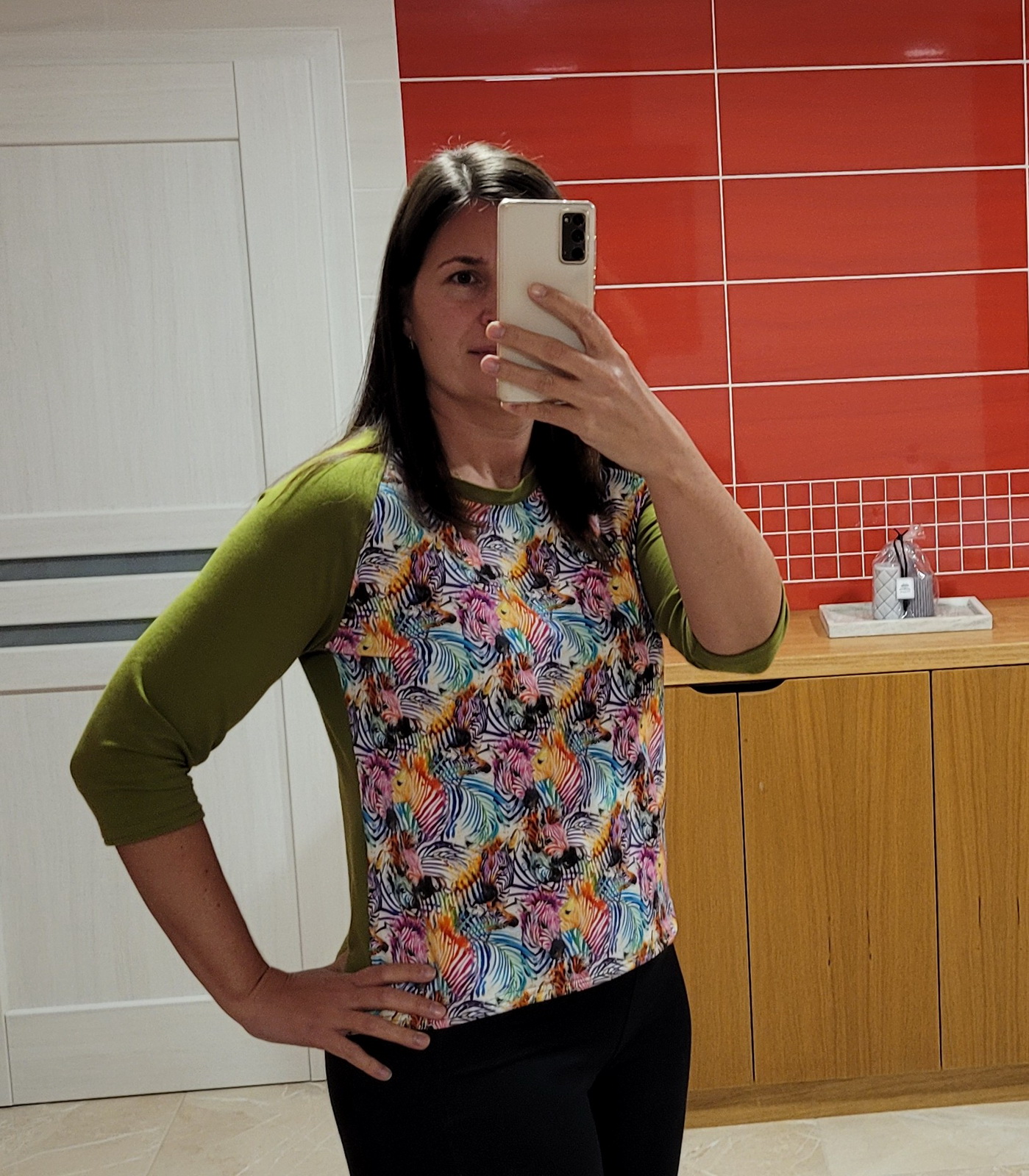 IM „Byla jsem opět moc spokojená jak se střihem tak s návodem. Vybrala jsem si schválně větší velikost a rukávy mám raději 3/4. Takže je triko přesně podle mých představ. Jsou tam chyby,ale prý nejsou moc vidět ;-) Zebry mám ještě na jedno triko a budou v kombinaci s královskou modrou. Už se těším. Děkuji za rady a inspiraci :-)“