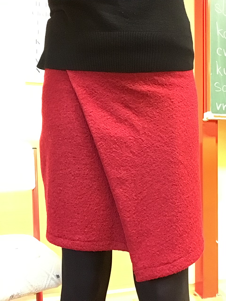 NP „Sukně se šila velice dobře - focení sukně snad trvalo déle než samotné šití... Spodní okraj mám začištěný na overlocku a zahnutý dovnitř. Sukně je velmi pohodlná, vařená vlna mi dopřává tepelný komfort. Skvělá kombinace do podzimního počasí. “