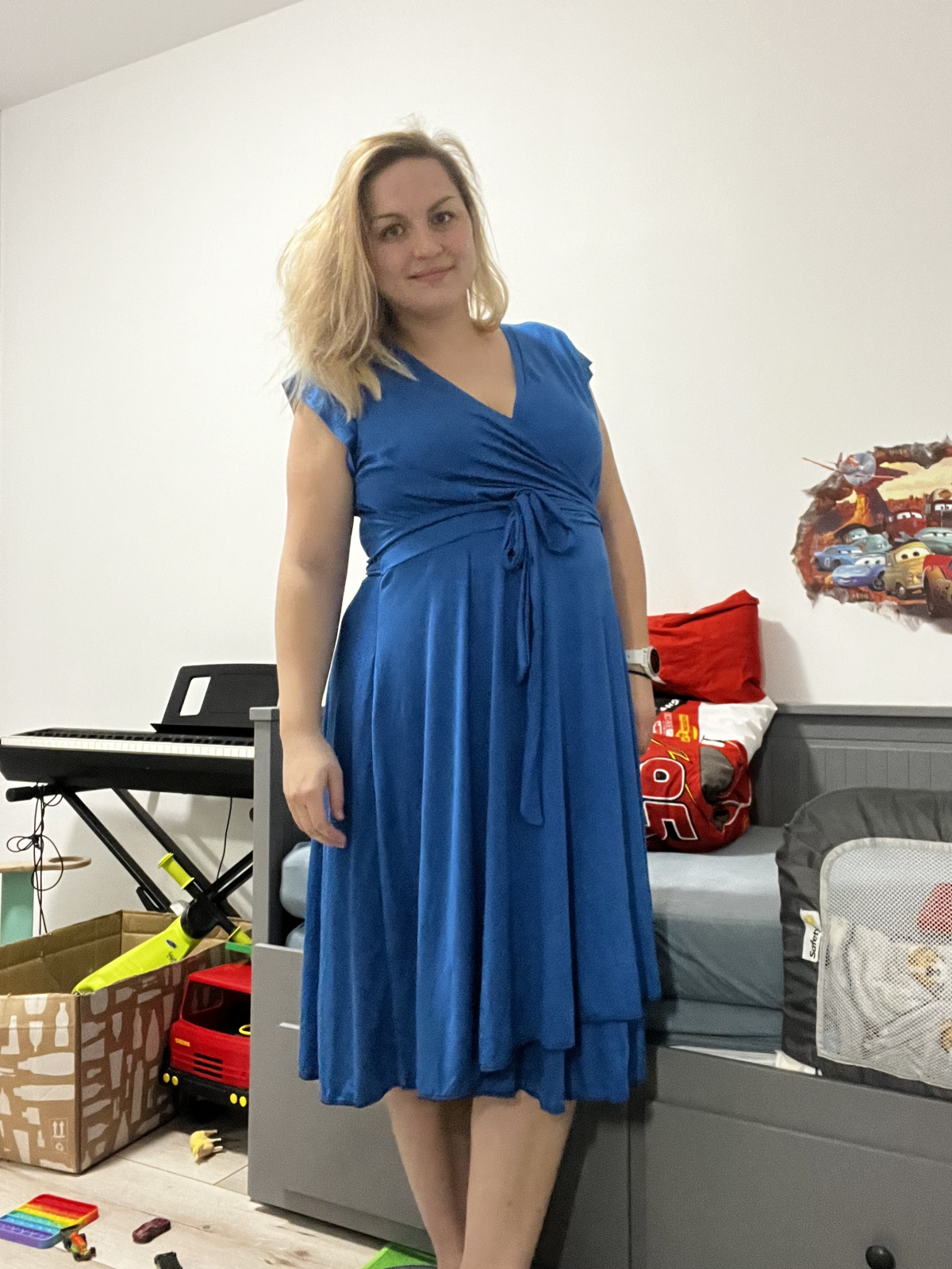 Lucie „Podle videonávodu se pracovalo perfektně. Vše bylo srozumitelné a jasné. Viskozový úplet je na tak těžkou sukni dost tahavý, příště bych asi volila trochu jiný materiál. Šaty jsou ale na těle moc příjemné, ženské. Určitě nejsou moje poslední. Po porodu zvážím, zda si příště nezkrátím živůtek, teď se to těžko odhaduje. “
