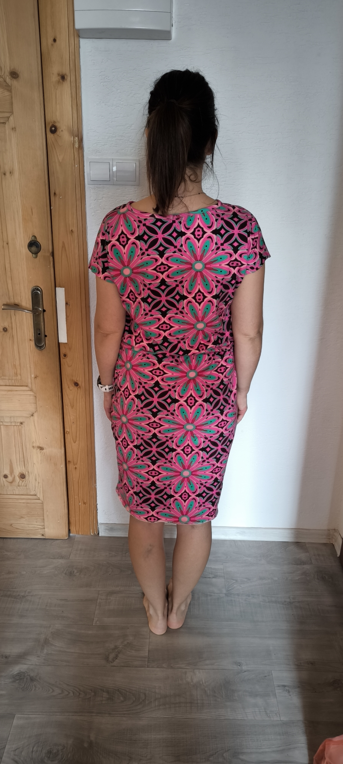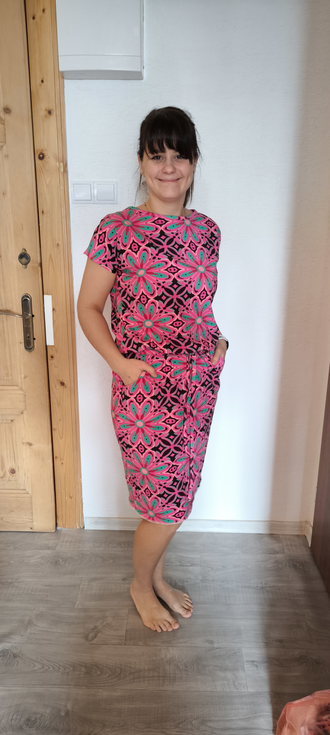 MZ „Šaty se šily díky návodu téměř samy, zvolila jsem velikost 40. Dlouho jsem váhala nad střihem, bála jsem se, že mi nesednou a zbytečně mě budou opticky dělat větší.☺️ Bála jsem se zbytečně, jsou úžasné, cítím se v nich skvěle a rozhodně to nebudou poslední. 😍 Na fotkách ještě nezačištěno.☺️“