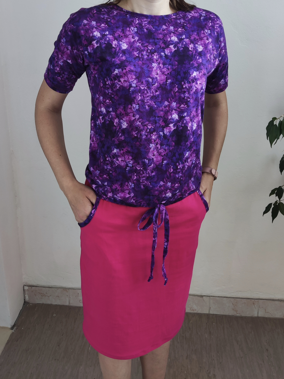 Monika „Predĺžila som o 5cm zivotik aj sukňu lebo meriam 183 cm,ale ten zivotik som ani tolko nemusela asi. Skusila som kombináciu 2 farieb,a som spokojná. Rukávy som našila a skratila, aby neboli 3/4, samostatné boli kratke, lebo mam sirsie plecia.“