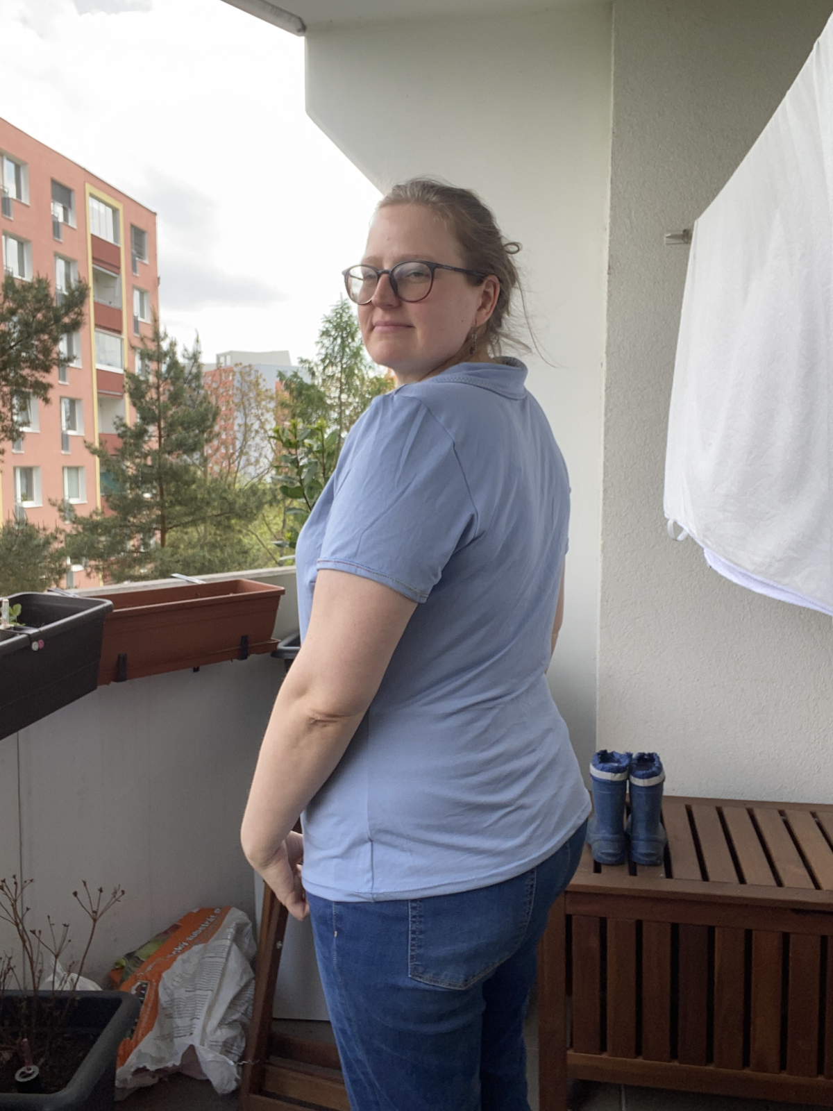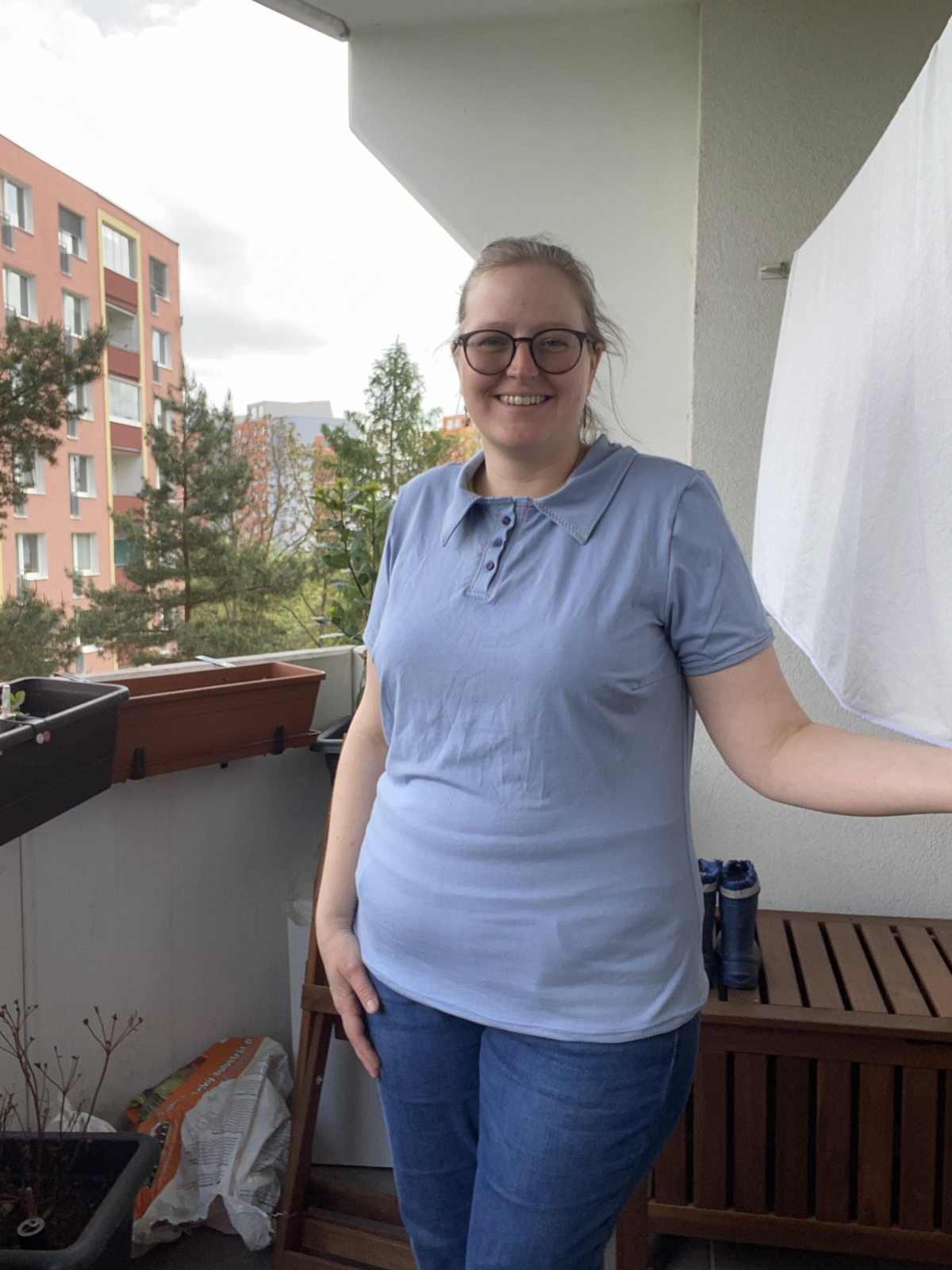 MH „Úplně super. Střih padne úplně skvěle, nemám lepší střih na tričko pro sebe. Můžete vidět úpravu s légou a límcem - léga šitá podle návodu od Hanylou a límec vymyšlený od oka.“