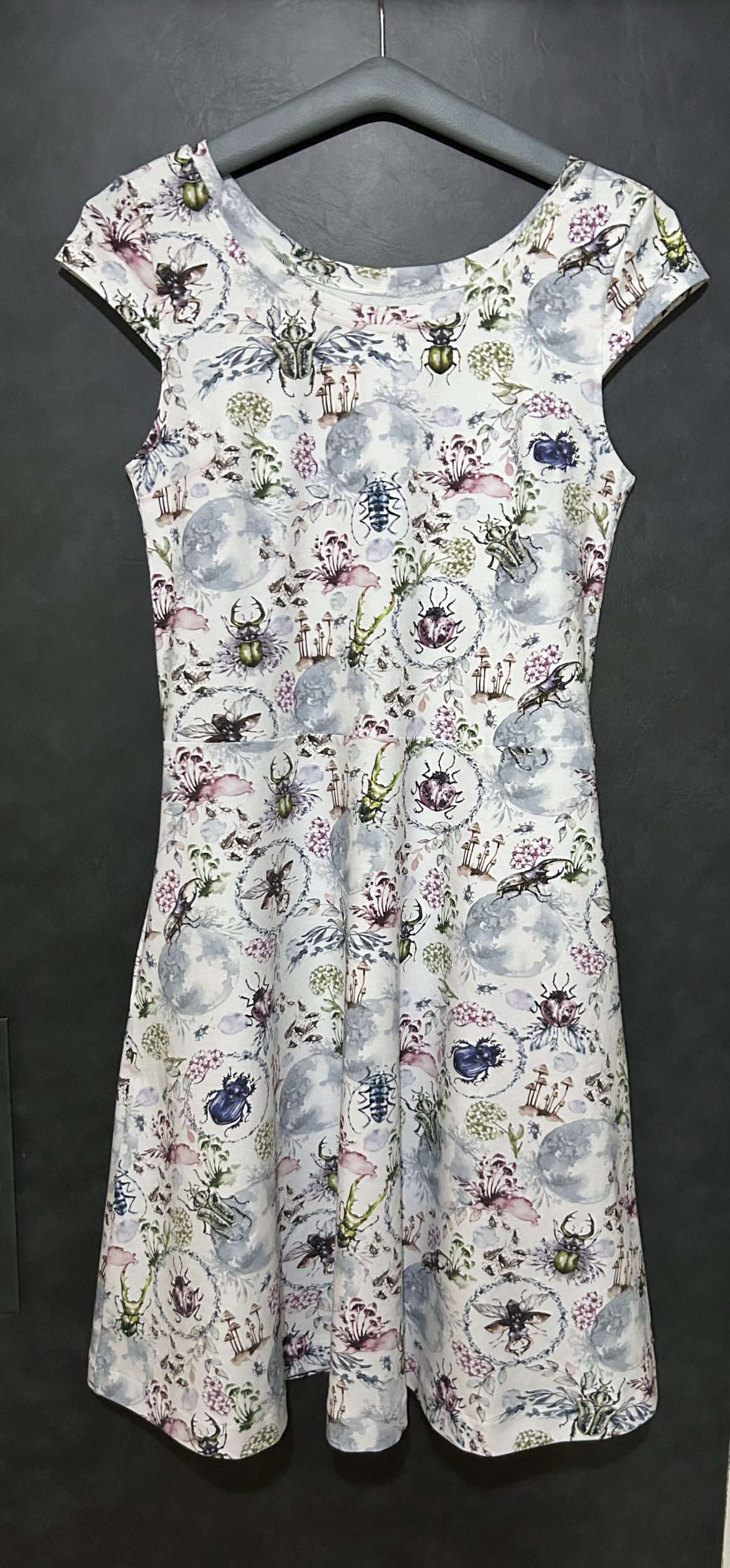 Soňa Horáková „Moje první Letníny. Šily se dle podrobného návodu moc dobře. Výstřih jsem místo podsádky olemovala proužkem a sedí pěkně. Šaty z tohoto střihu jsou velmi pohodlné a kapsy pro mne hodně využitelné. “