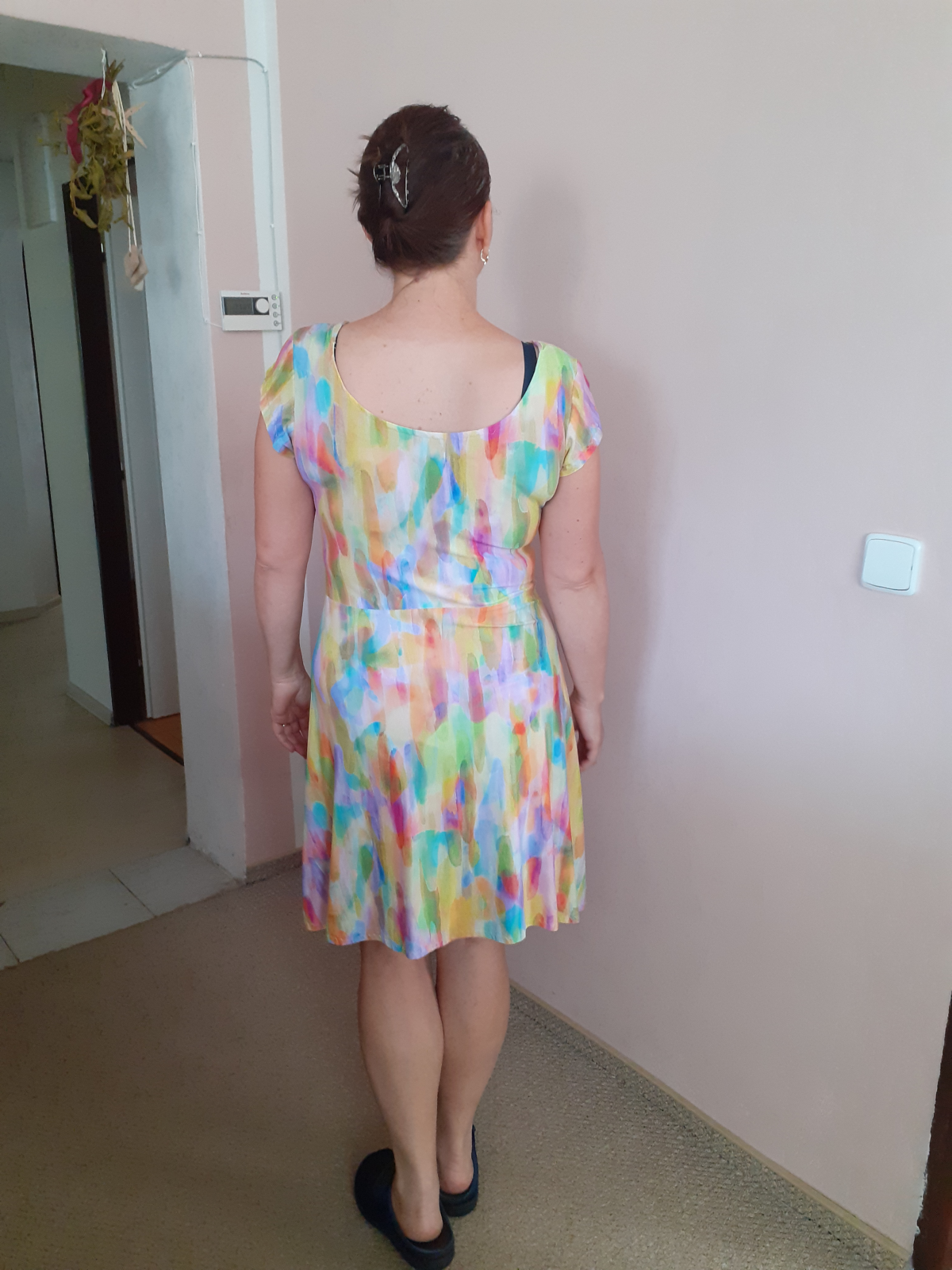 MB „Šaty se šily velmi dobře díky videonávodu a preciznímu střihu. Oceňuji, že jsou již přidané přídavky a nemusím je kreslit sama. Úplet byl více pružný, než jsem čekala a tak mi přidělal práci navíc. Použila jsem tulipánové rukávky z Cesmín.“