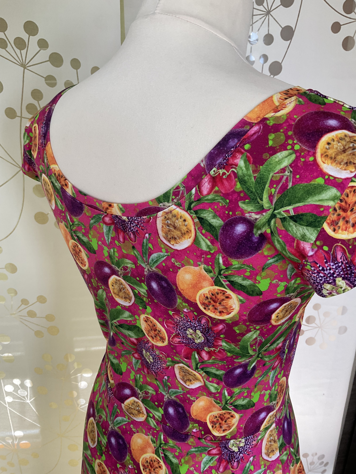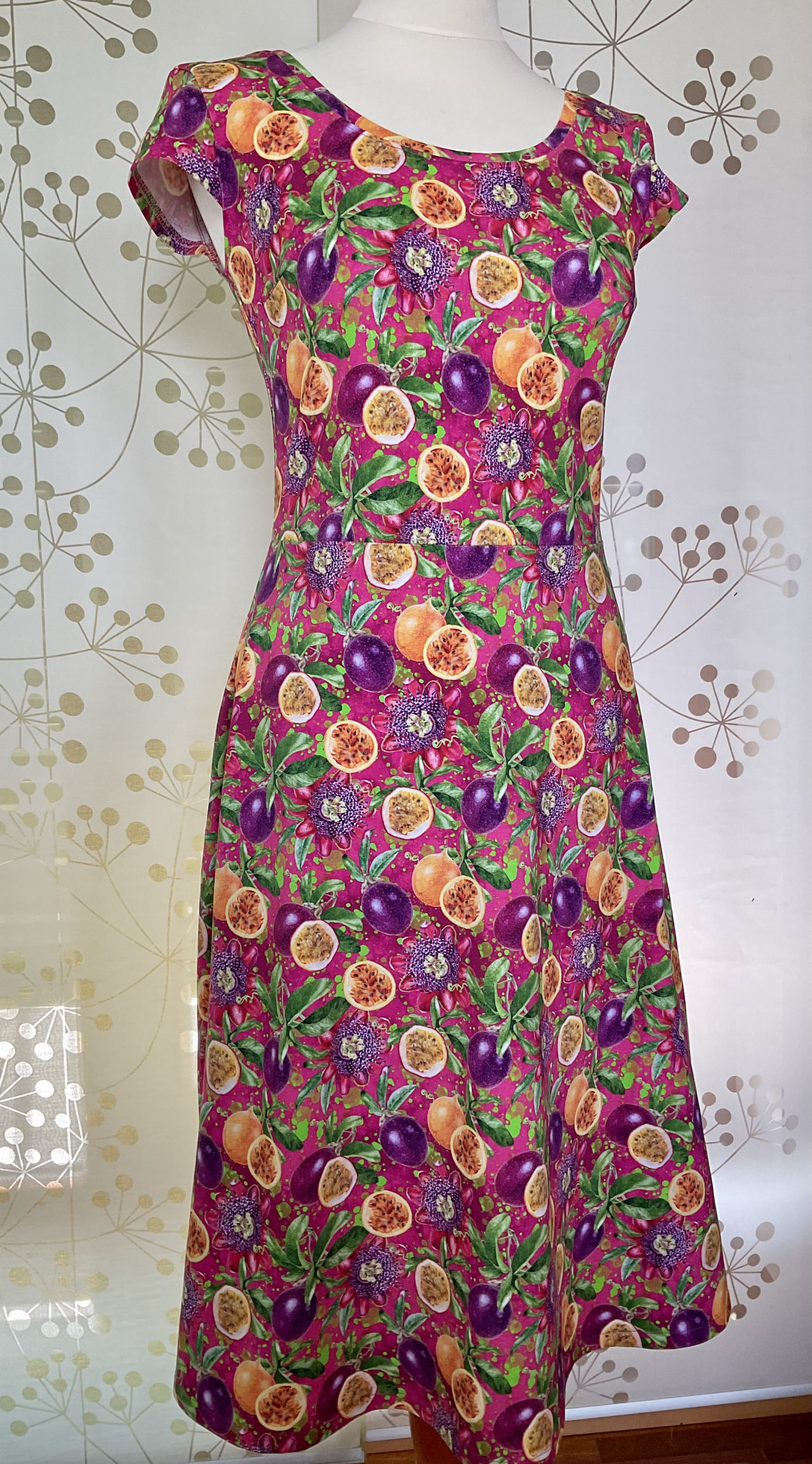 JK „Šilo se jako vždy skvěle. Poprvé s hlubším výstřihem vpředu i vzadu, jsou to šaty k moři, takže do toho horka i bez kapes. Výstřih lemovaný proužkem napůl, aby se trochu stáhl a nepadal z ramen. Pro ten případ jsem měla v záloze přidat na záda stuhu/mašli, ale nebylo třeba. “