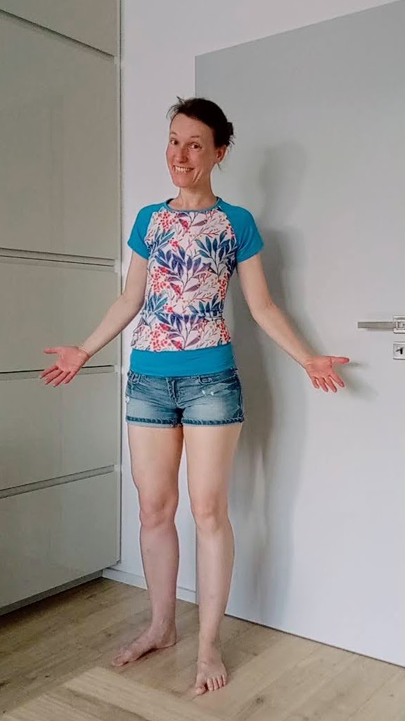 Pavla „Je to moje druhé raglánové tričko, takže jsem si pouštěla návod, který je pěkně srozumitelný. Konfigurace na míru je úžasná věc, ze které jsem nadšená! Určitě si budu konfigurovat další triko, které bude trochu volnější (nastavovala jsem podle hodně upnutého funkčního trika, takže mám přesně to, co jsem chtěla). Výstřih jsem trochu zvětšila a protože mi nevyšla látka, tak mám dole nastavený pruh.“