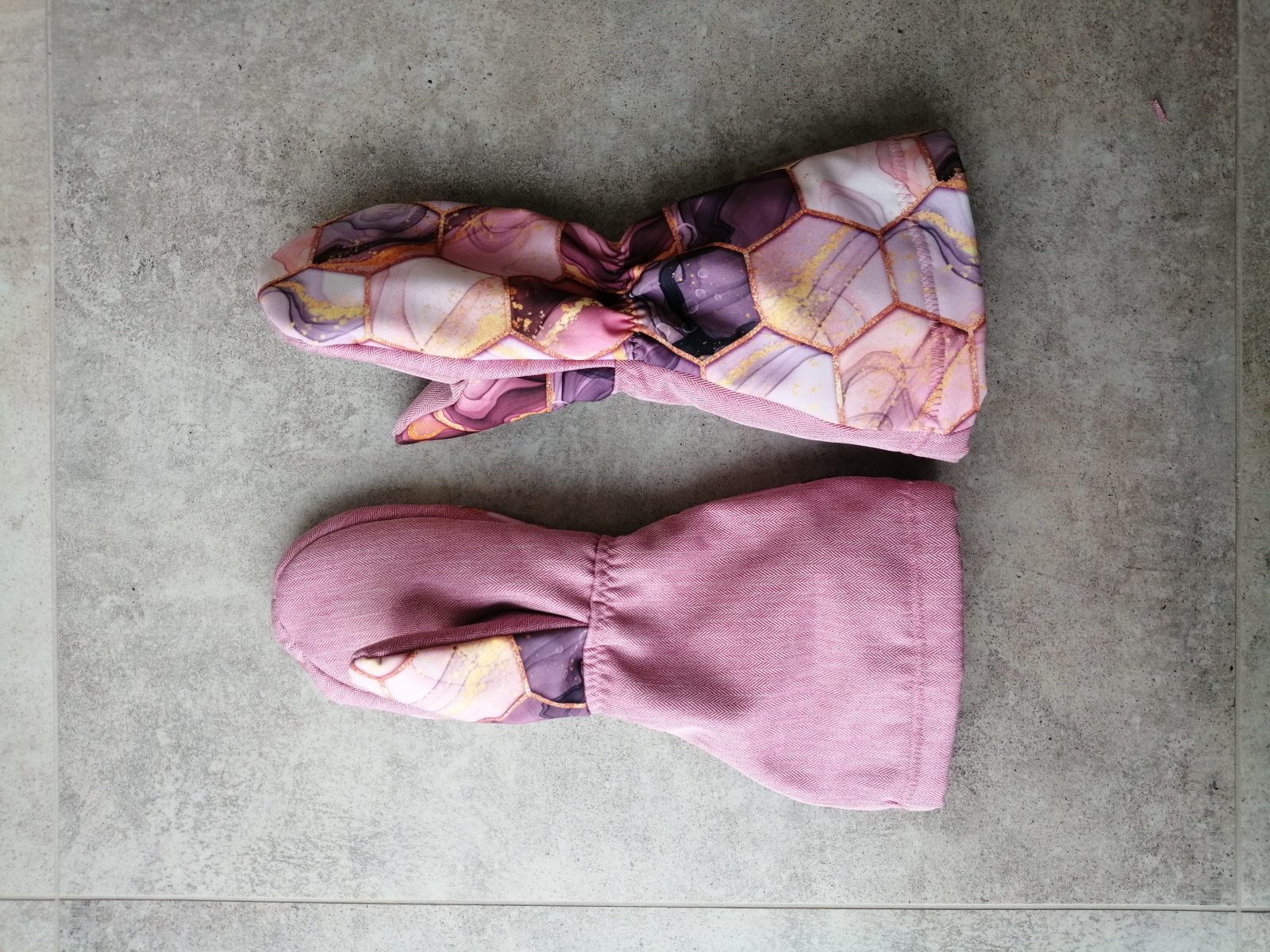 „Rukavice jsem si ušila ze zbytků po kabátu jako zkušební vzorek pro sebe, proto ta větší velikost. Střih je super! Když pominu množství dílů k nastřihání, tak jsou rukavice relativně rychle a snadno ušité, podle videonávodu to jde jak po másle. Díky!“