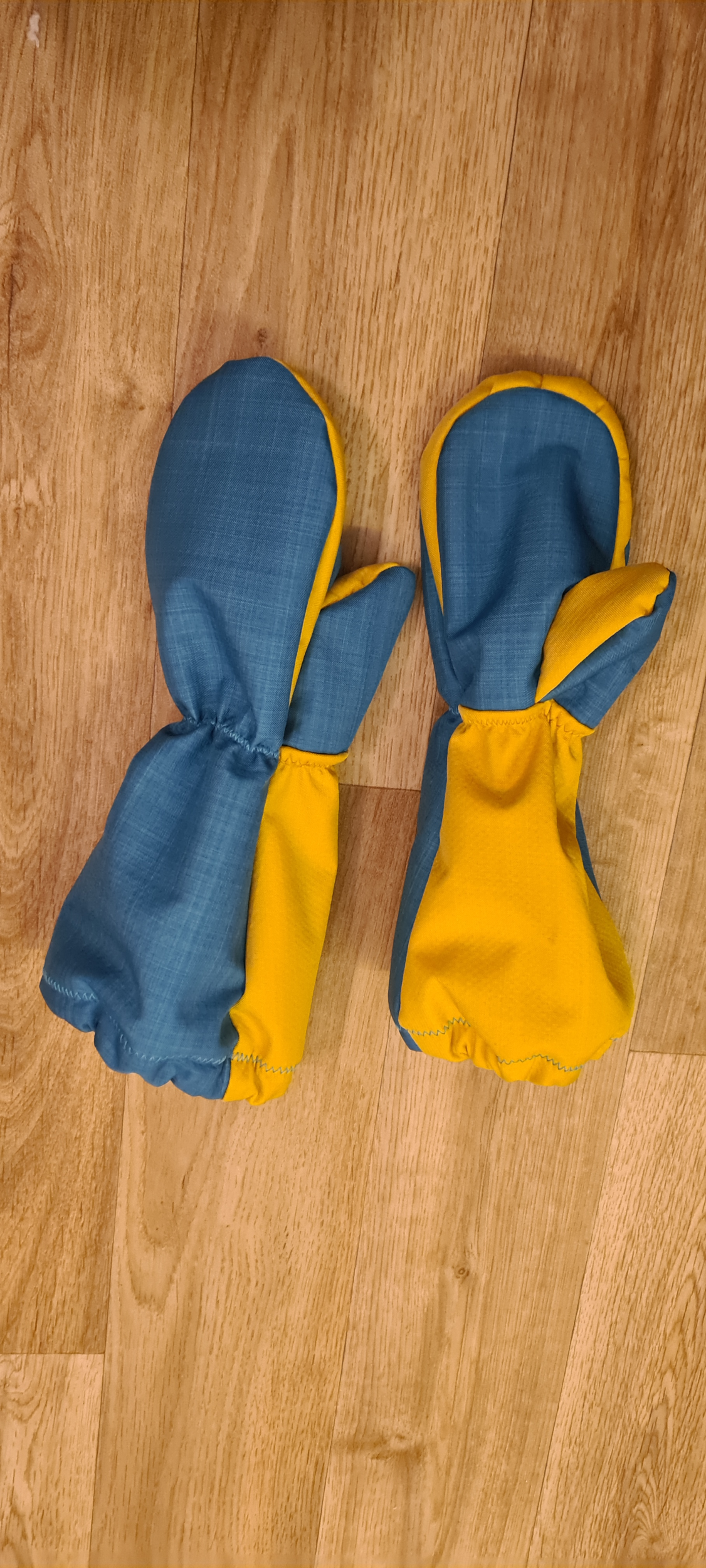 Jako svrchní materiál berte nepromokavý materiál. Šusťák se zátěrem nebo kvalitní softshell, na rukavice mi přijde nejvhodnětší jarní (líp se šije) s hodnotami 30/15. Ty hodnoty jsou důležité, protože udávají za jak dlouho materiál promokne. Většina softshellu je bohužel 10/3 (pokud není uvedeno, určitě je 10/3), z toho rukavice brzo promoknou.