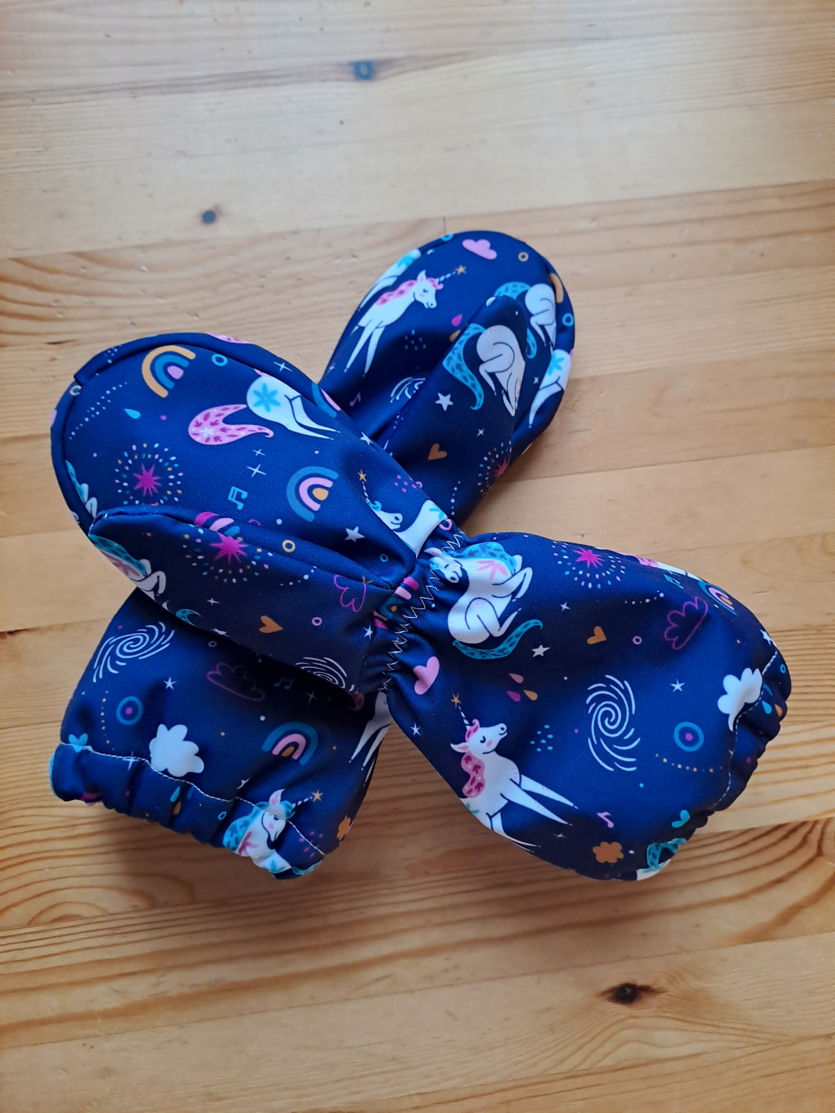 „Šilo se mi snadno a lehce, syn je z rukavic nadšený - na “práci” na celý den do lesní školky super 👌 horní gumičku jsem navlíkla a zavázala až dle bundy, od té doby už jsou v provozu a špinavé… 😉“