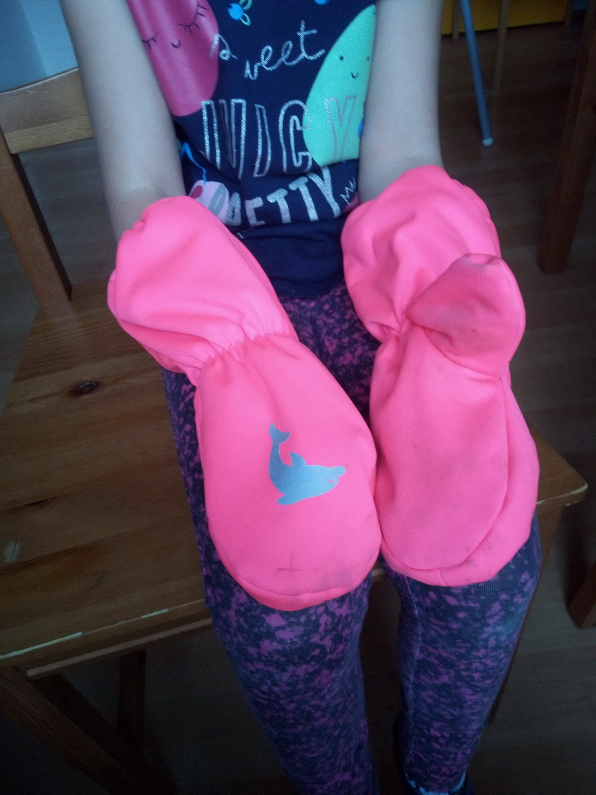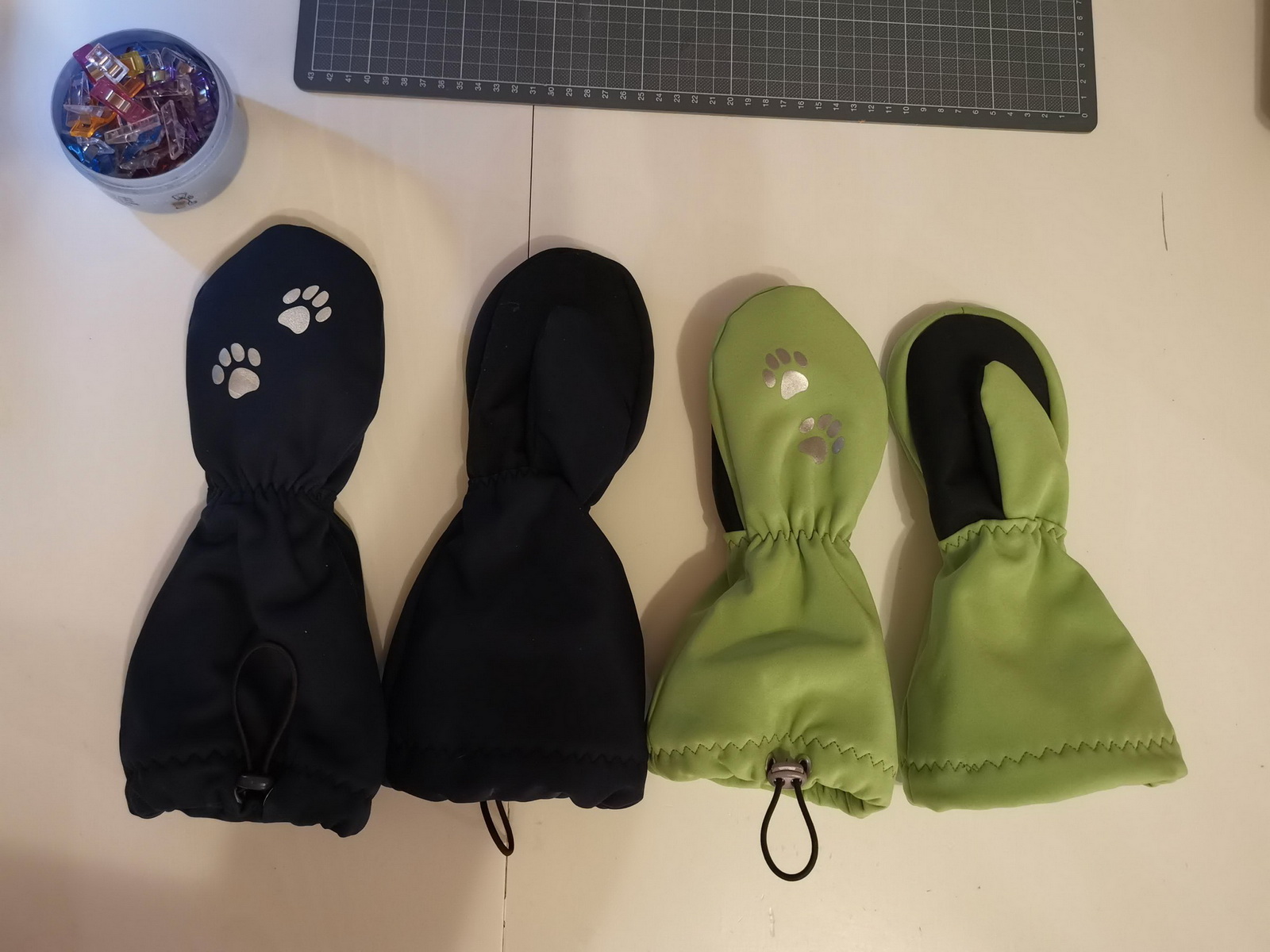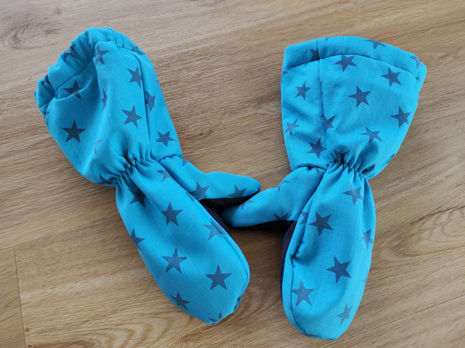 „Rukavice jsou velmi propracované a dobře dětem sedí. Dlouhý a široký spodek rukavice jde snadno natáhnout přes bundu až k lokti a dobře drží. Pokud se stříhá přesně a šije podle videonávodu, není co zkazit, ale je to piplačka :-D“