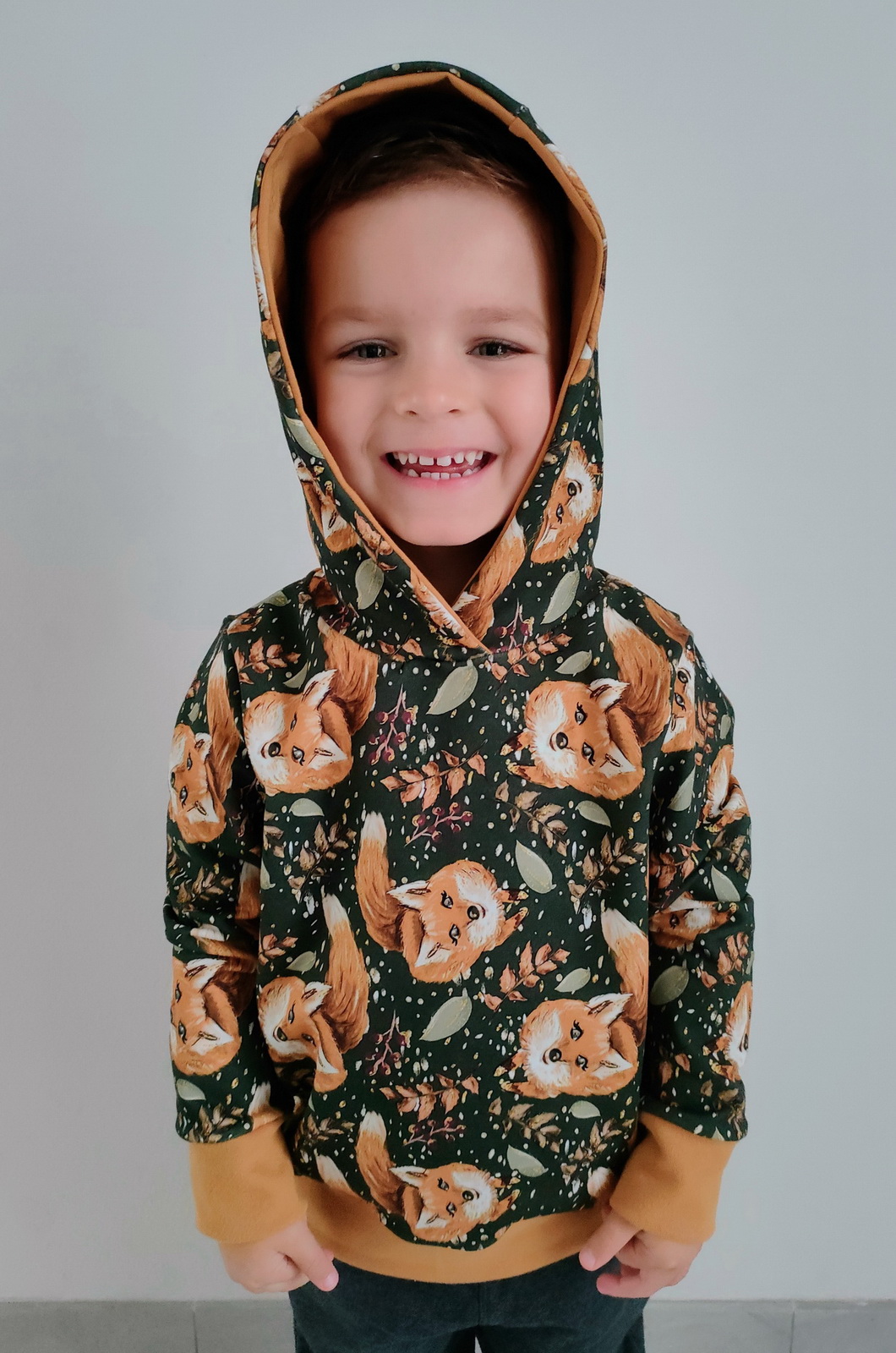 „Velikost sedí suprově a mikina je tak akorát, není ani opnutá, ani úplně pytloidní, takže opravdu jak pro holku, tak pro kluka. Ouška jsem si vypůjčila že střihu na vestu Viky. Určitě to není naposledy, co jsem podle "Michala" šila. :) Střih je jednoduchý a srozumitelný, jak já říkám "blbuvzdorný", navíc jsem využila možnost vytisknout si jej i s přídavky, takže šla práce opravdu raz dva. :)“