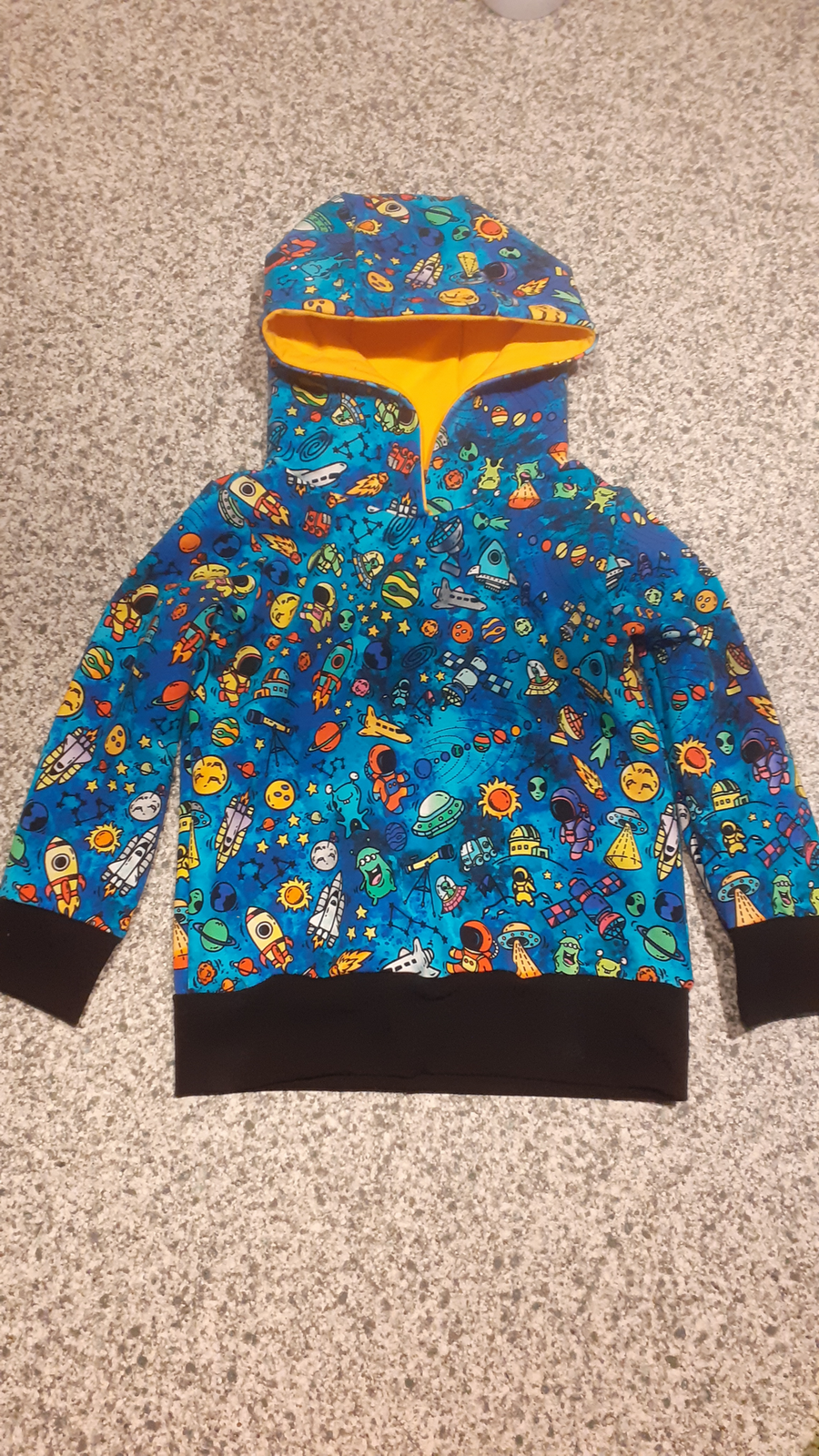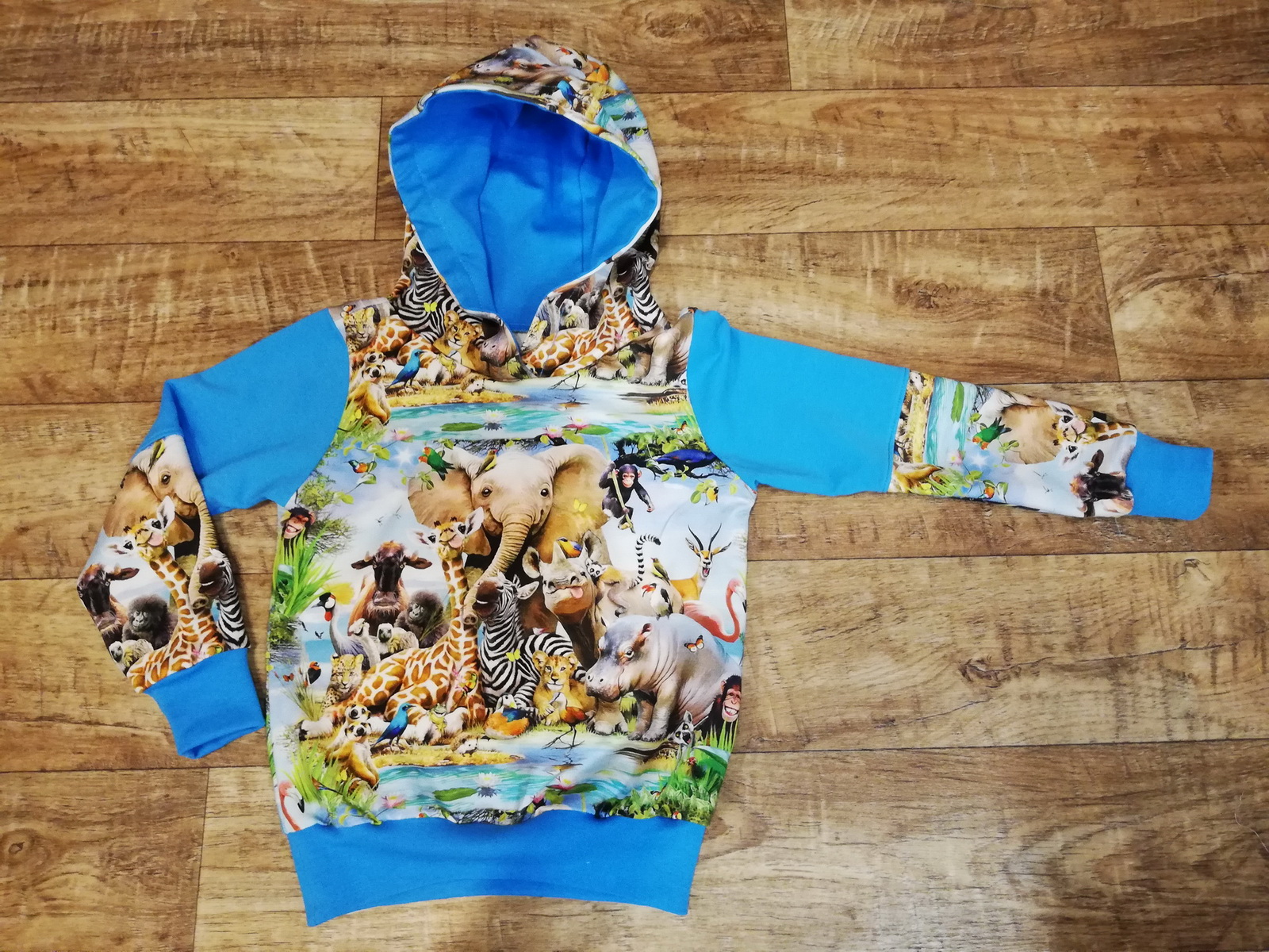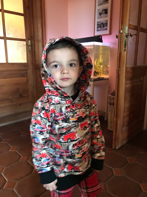 „Už čtvrtá mikina dle tohoto střihu, na přání bez kapuce, protože v kapuce pod zimní bundou "zavazí". Šilo se opět úžasně.“