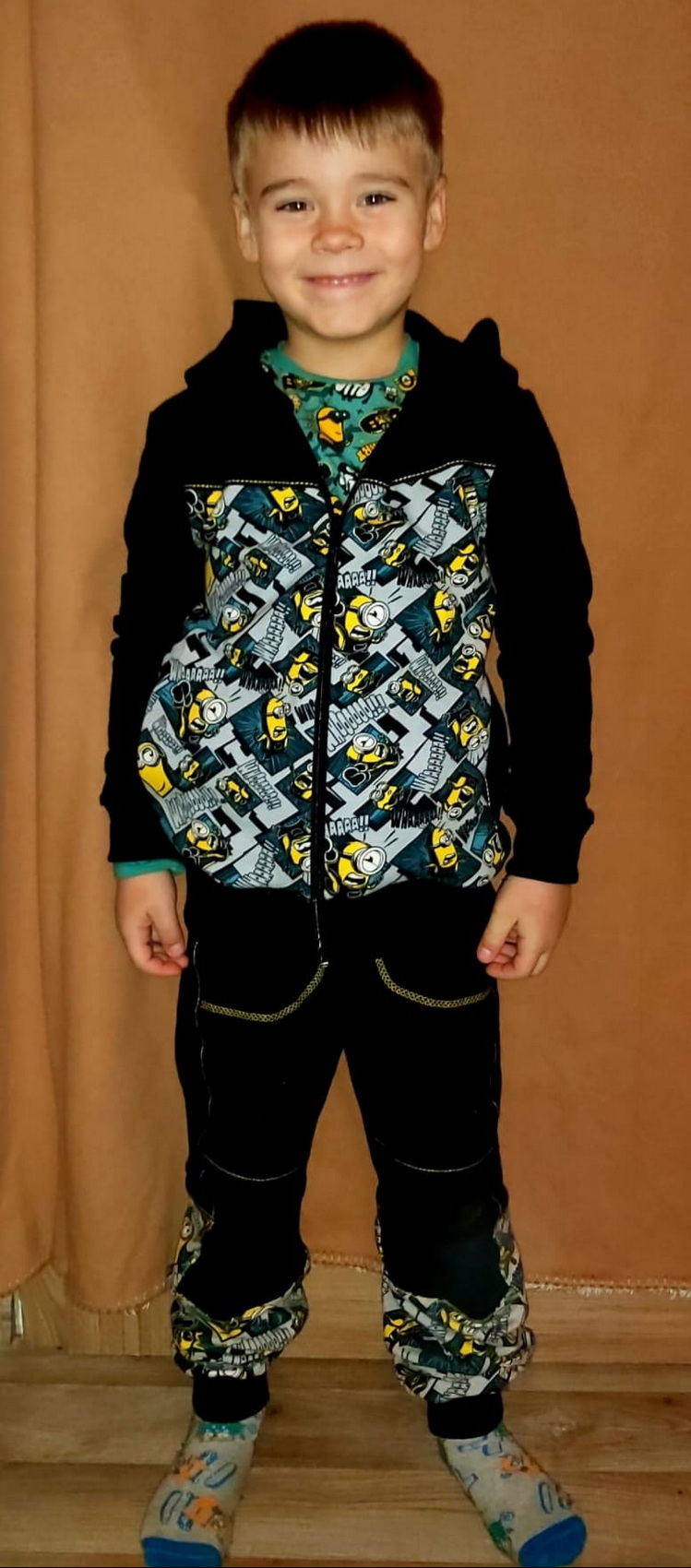 „Opět skvělý střih i návod. Ještě žádnou z mikin co jsem kdy šila jsem neušila tak rychle jako podle Vašeho návodu! Upravila jsem si jen přední díl tak, aby se nemusel řasit do sedla a bylo možné jej použít jako verzi pro kluky. Mikina krásně sedí!! Tepláky na fotce jsou podle Vašeho střihu "Kamil" a tričko podle střihu "Životriko" Mockrát děkuji za vaše střihy, které se dají upravovat na míru a obsahují přídavky na švy a je možné tisknout každou velikost samostatně !!!!“