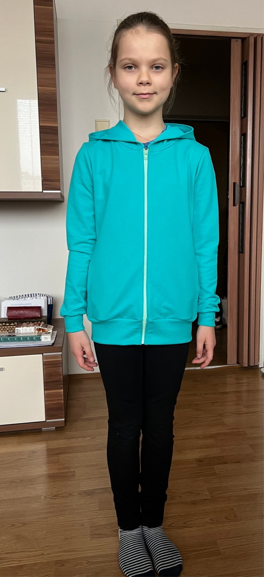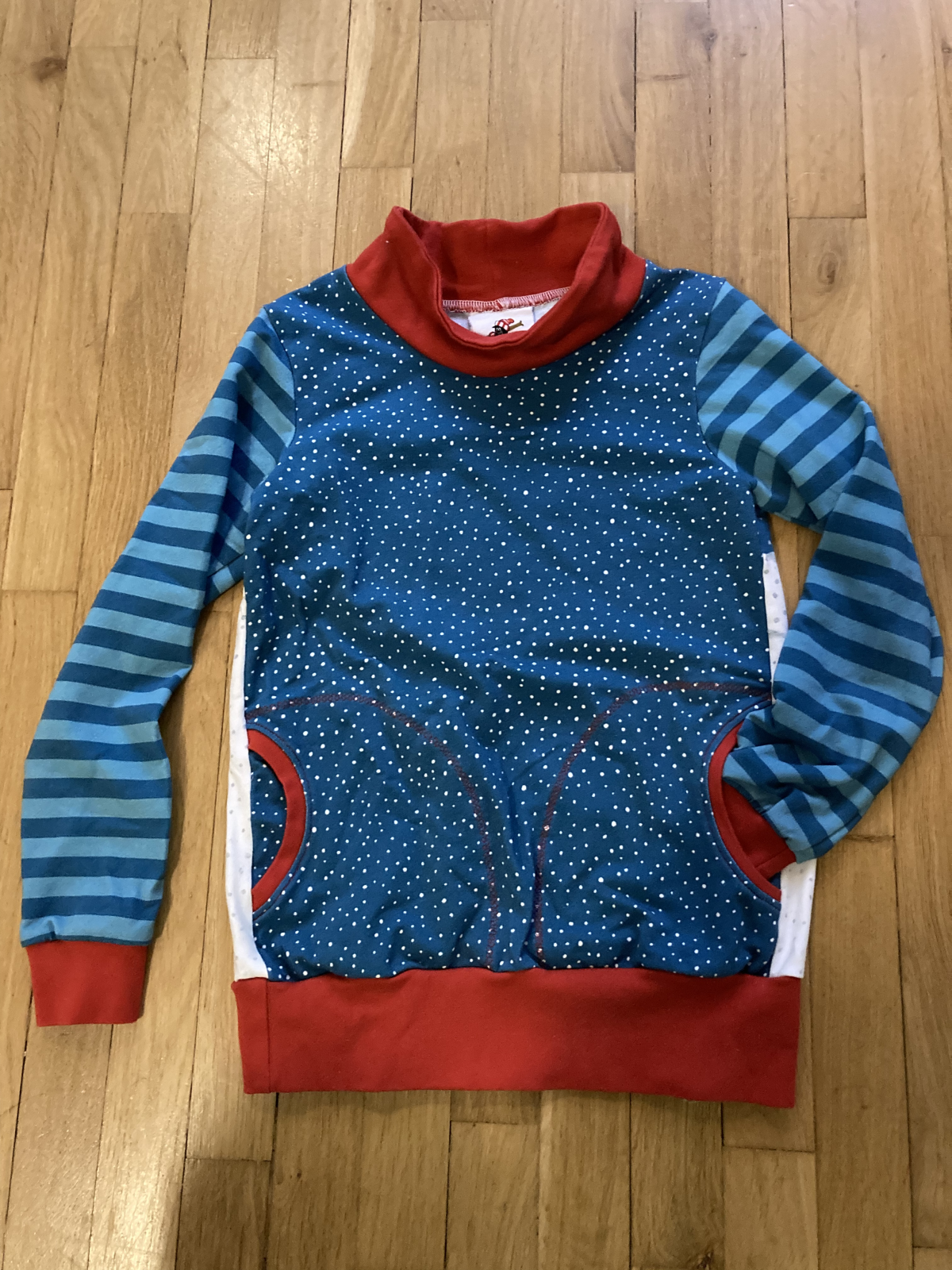 Mikina je neuvěřitelně variabilní a díky nastavení na míru ji můžete šít pro děti od školky až po střední školu. V nastavení střihu na míru lze nastavit i množství řasení, stejně tak délku a šířku mikiny i rukávů. Mikina je spíš upnutější, délkově sedí akorát, nemá rezervu na "do toho doroste :-)".