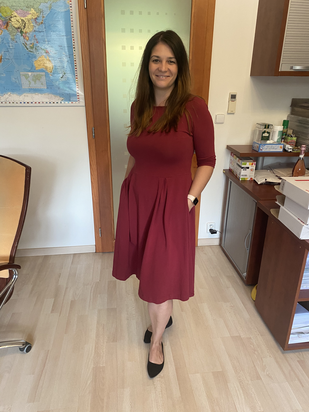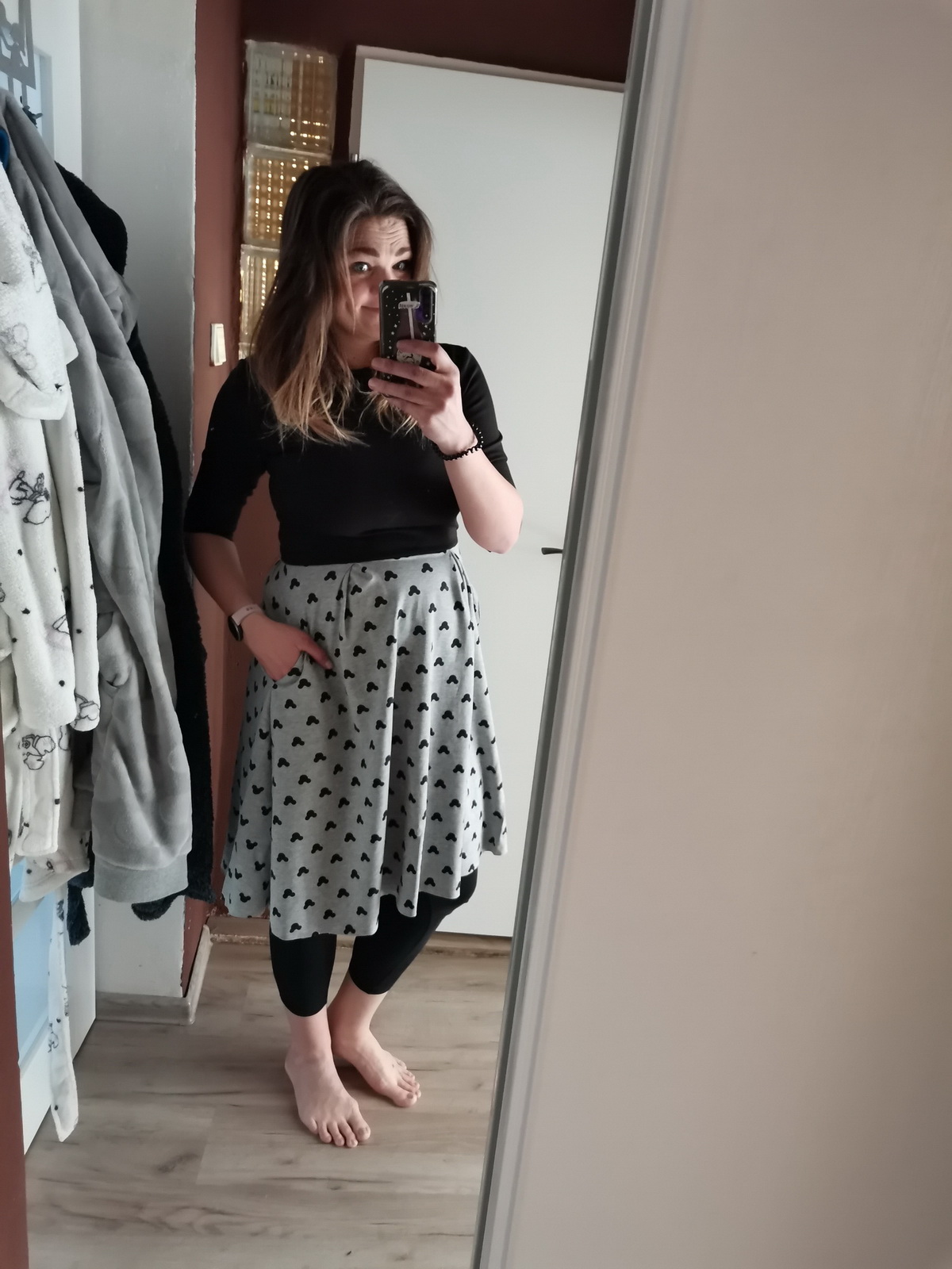 „Střih sedí perfektně. Je to můj první pokus s úpletem a myslím, že to dopadlo celkem dobře :) Je skvělé, že si můžu střih upravit přesně na míru. Mám kratší sukni o proti původnímu střihu. Jinak vřele doporučuji :)“