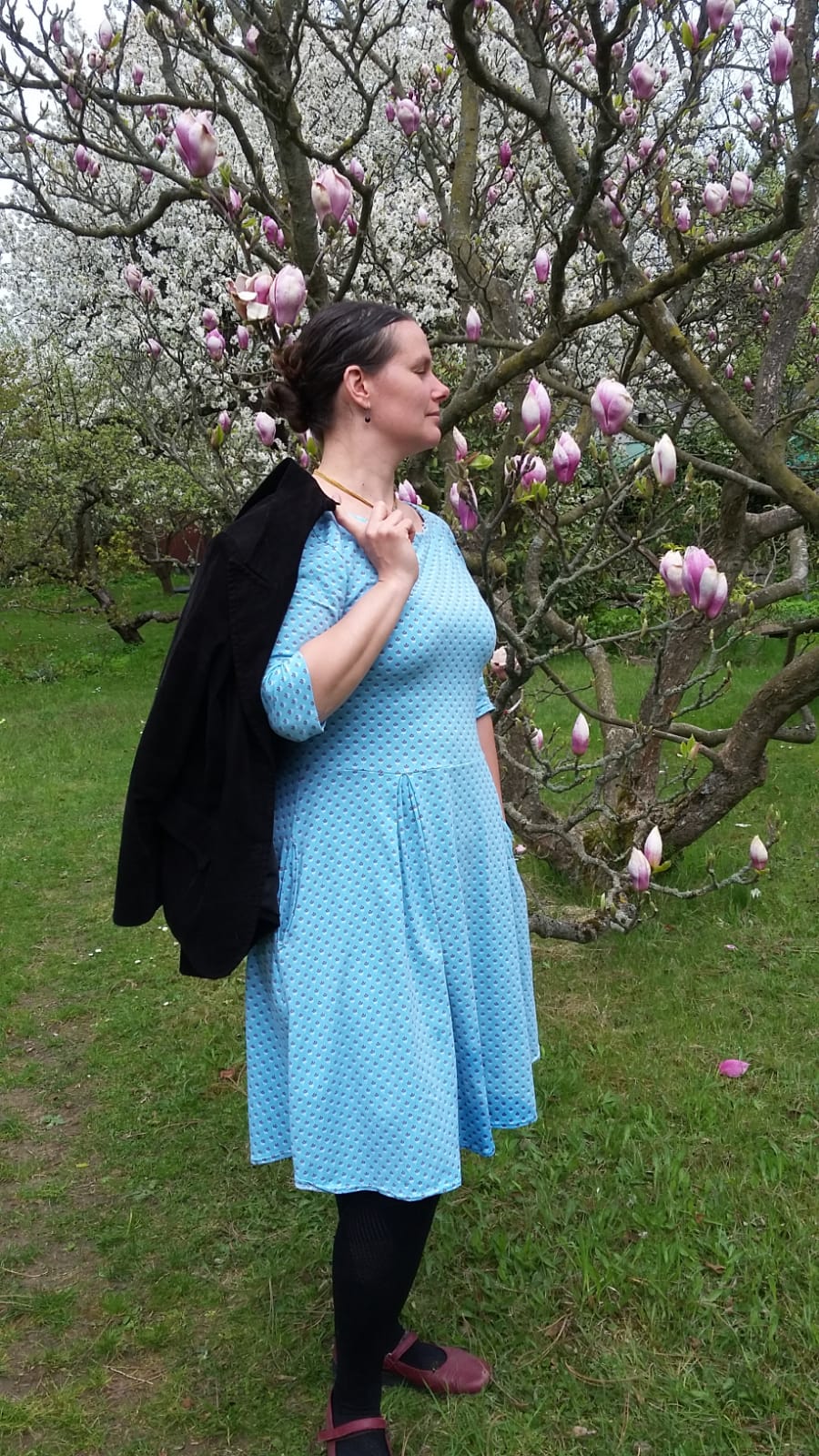 „Šití těchto šatů je velký relax..... šila jsem z úpletu, na jaro, proto krátký rukáv.“