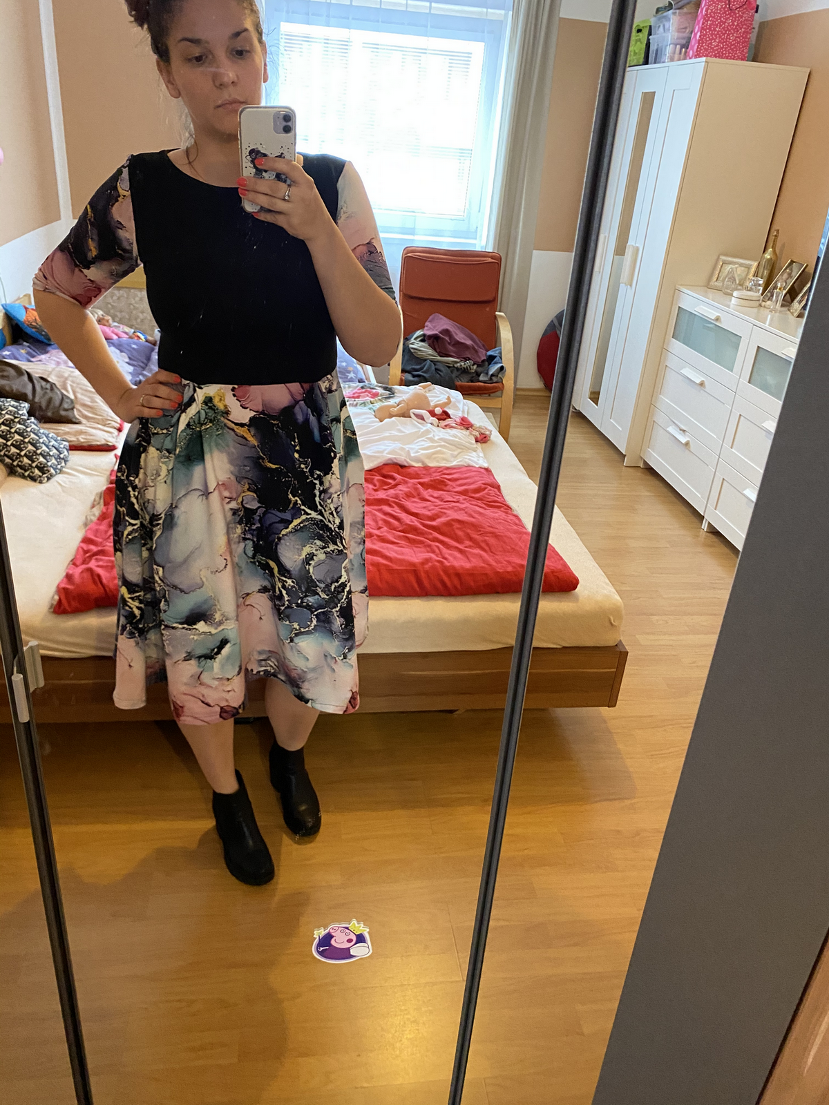 „Videonavod mi pomohl objasnit některé nepochopitelné kroky.. Jsou to moje první ušité šaty v zivote🤩takže mám neskutečnou radost, že se trošku podobaja hlavně mi Teda jako jsou a ukrývají tehu bříško 8.mesic 😂jinak chyb jak máku,ale vím co napravovat.. Takže moc Dekuji 🤩“