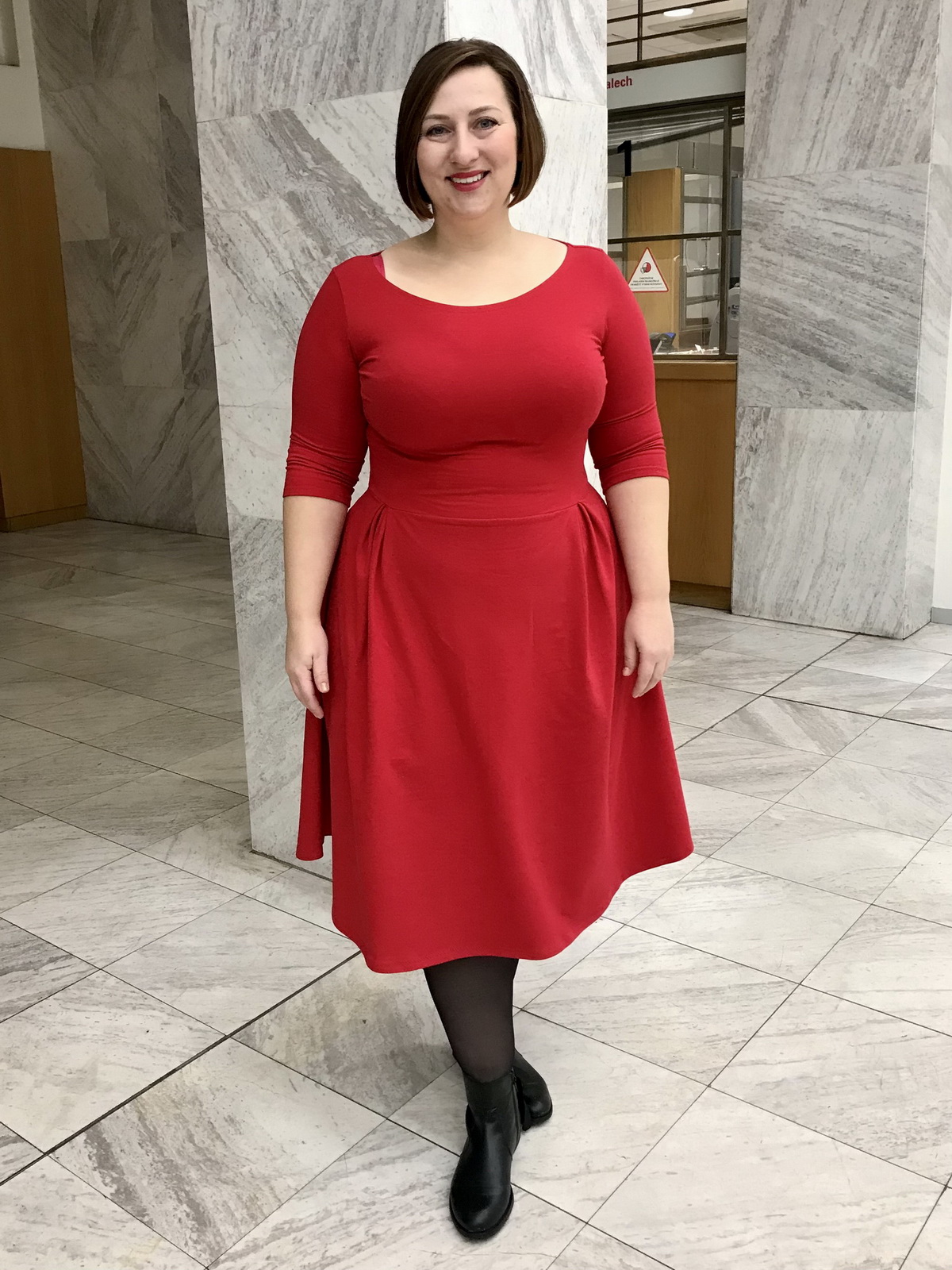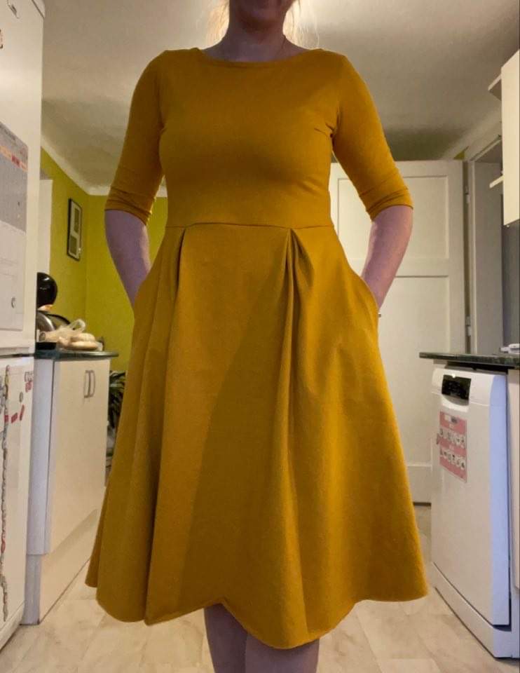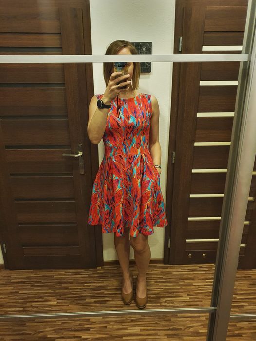 „Moc pekny strih, saty se sily paradne, moc se mi libi hlavne uprava vrchni casti - pekne podtrhuje zenske krivky. Na mem obrazku neni sukne zcela podle puvodniho strihu: protoze jsem nemela dostatek latky, musela jsem vynechat sklady. Ale to je kouzlo dobreho strihu - umoznuje spoustu drobnych variaci pri kazdem siti. A diky za video - vizual celeho procesu je neocenitelny 👍.“