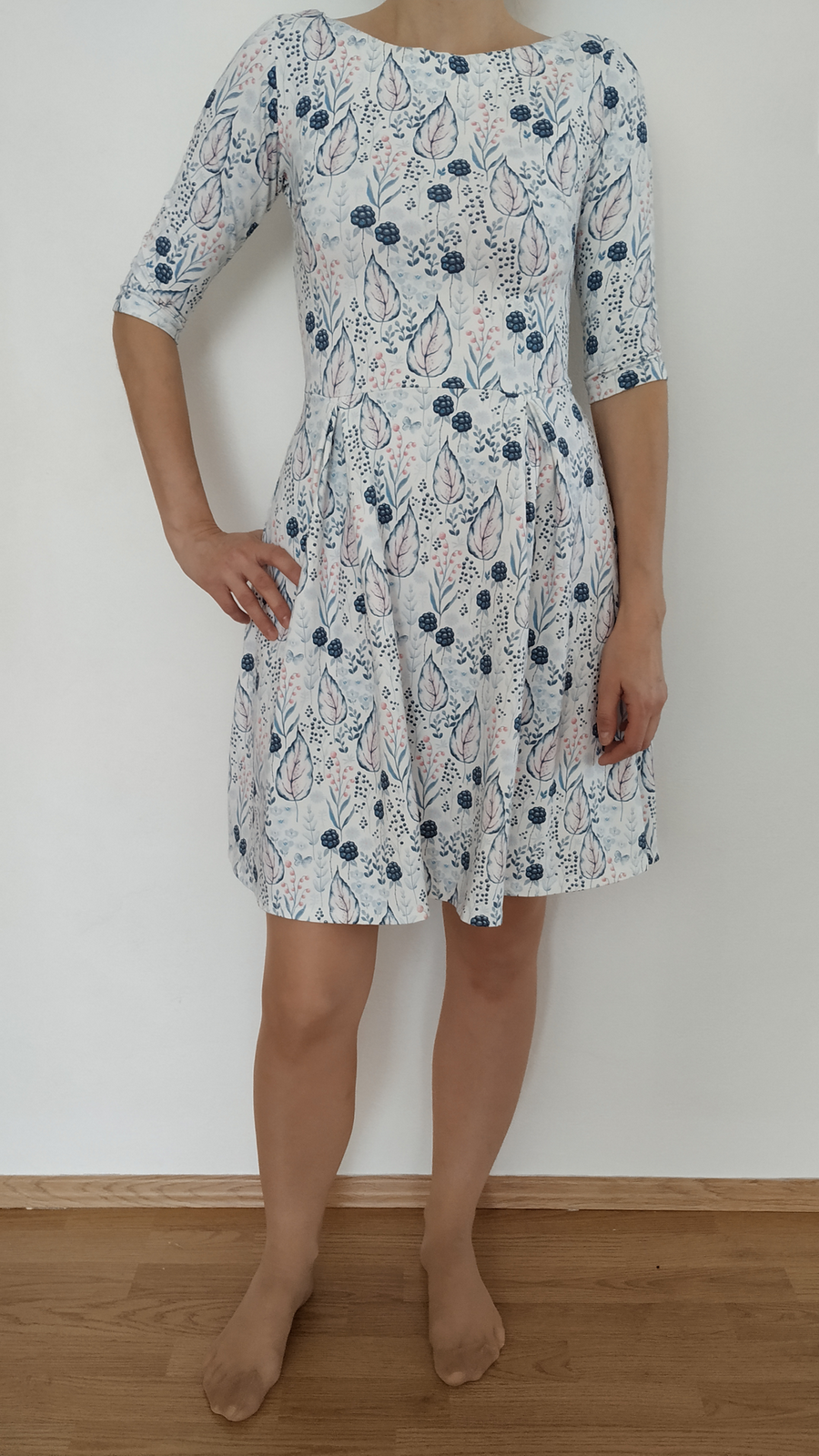 „Výroba střihu byla z celého projektu nejnáročnejší, vytisknout, slepit a vystřihat. Ovšem samotné šití je díky dokonalému návodu opravdu jednoduché! Střih jsem si upravila u výstřihu- nedávala jsem vsadku a zakončila zahnutím dovnitř. A zároveň jsem nešila kapsy. Délka šatů při mé výšce 170cm zcela odpovídá. Už mám objednanou látku na další :)