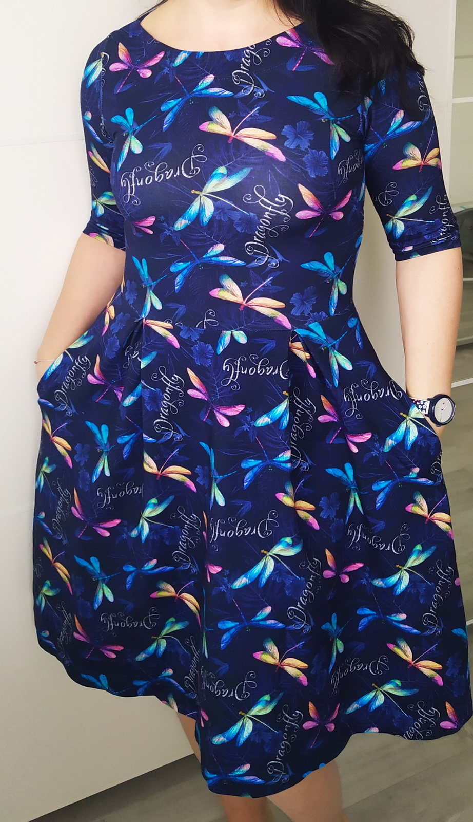 „Strih velmi lahky, vyborne video, velmi pomohlo pri šití. Saty su velmi prijemne, lahucke. Saty som skrátila o 10 cm a nešila som kapsy. Inak mi strih sedel ako uliaty“