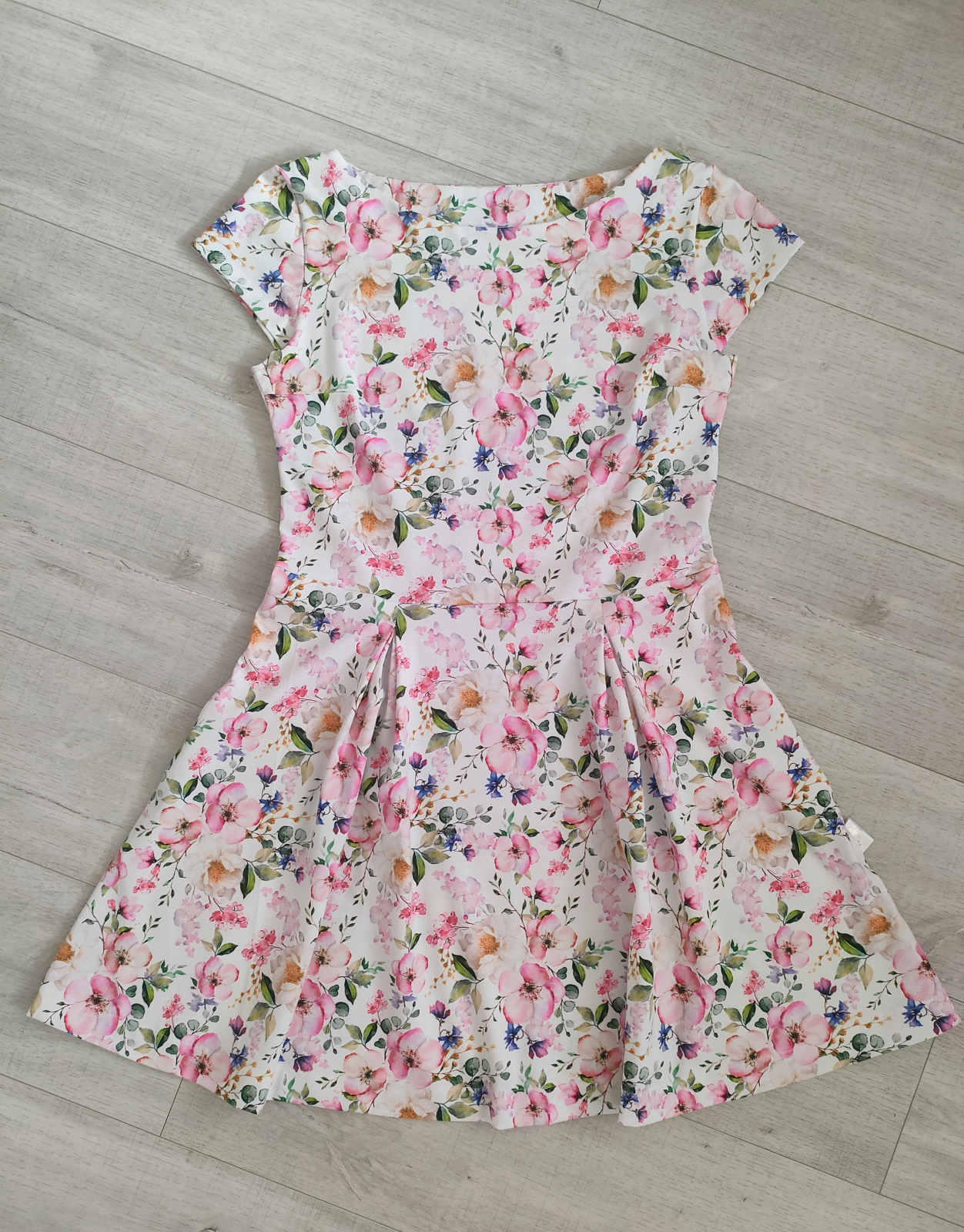 Šila som zo zbytku, čo mi ostal z iného projektu, preto som pri sukni zaimprovizovala - predný diel som nerozširovala, ale iba "naskladala" podľa návodu. Sukňa je kratšia, práve kvôli nedostatočnému množstvu látky, ale ja aj tak uprednostňujem kratšie sukne, tak mi to vôbec nevadí :-)