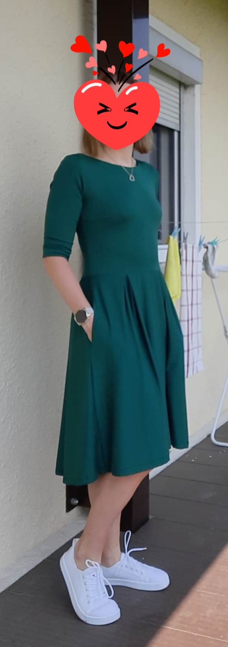 „Střih je úžasně, krásně se šije, velikost úžasně sedí,za což jsem nesmírně šťastná. Video návod je nejlepší věc na světě. Upravovala jsem si šaty na kojící a taky zkracovala nad kolena, neboť při výšce 164 jsme je měla delší a jsou perfektní. Určitě nezůstane u jednich 😀😀 děkuji“