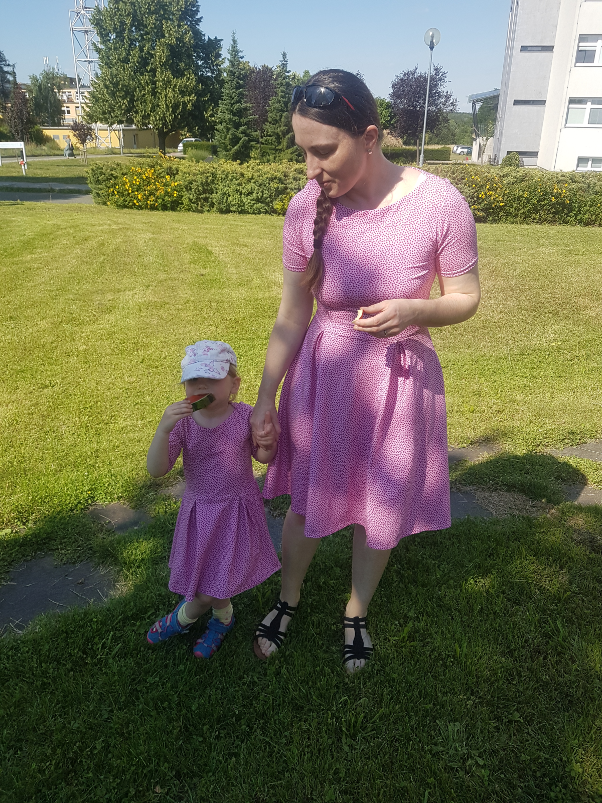 „První šaty pro maminku. Rozhodovala jsem se mezi Pavlínami a Letniny, volba padla na Pavlíny. Podle videonavodu se silo úplně fajn, i pro začátečníka jako jsem já. Už hledám vhodný vzor na šaty i pro mě a dcerku 😁“