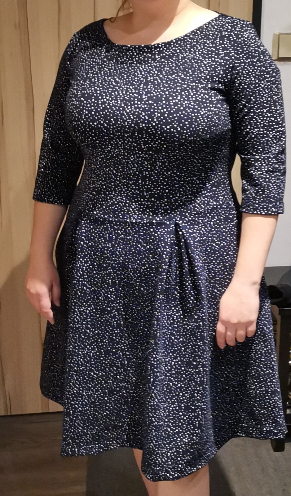 „První Pavlíny, je to opravdu velice pohodlná záležitost. Střih konfigurován - mám úzká ramena a proto odstával výstřih - po zúžení šíře ramen se problém vyřešil. Sukni jsem chtěla lemovat, ale nebylo dost látky, tak jsem ji pouze zahnula. Těším se na další Pavlíny! :)“