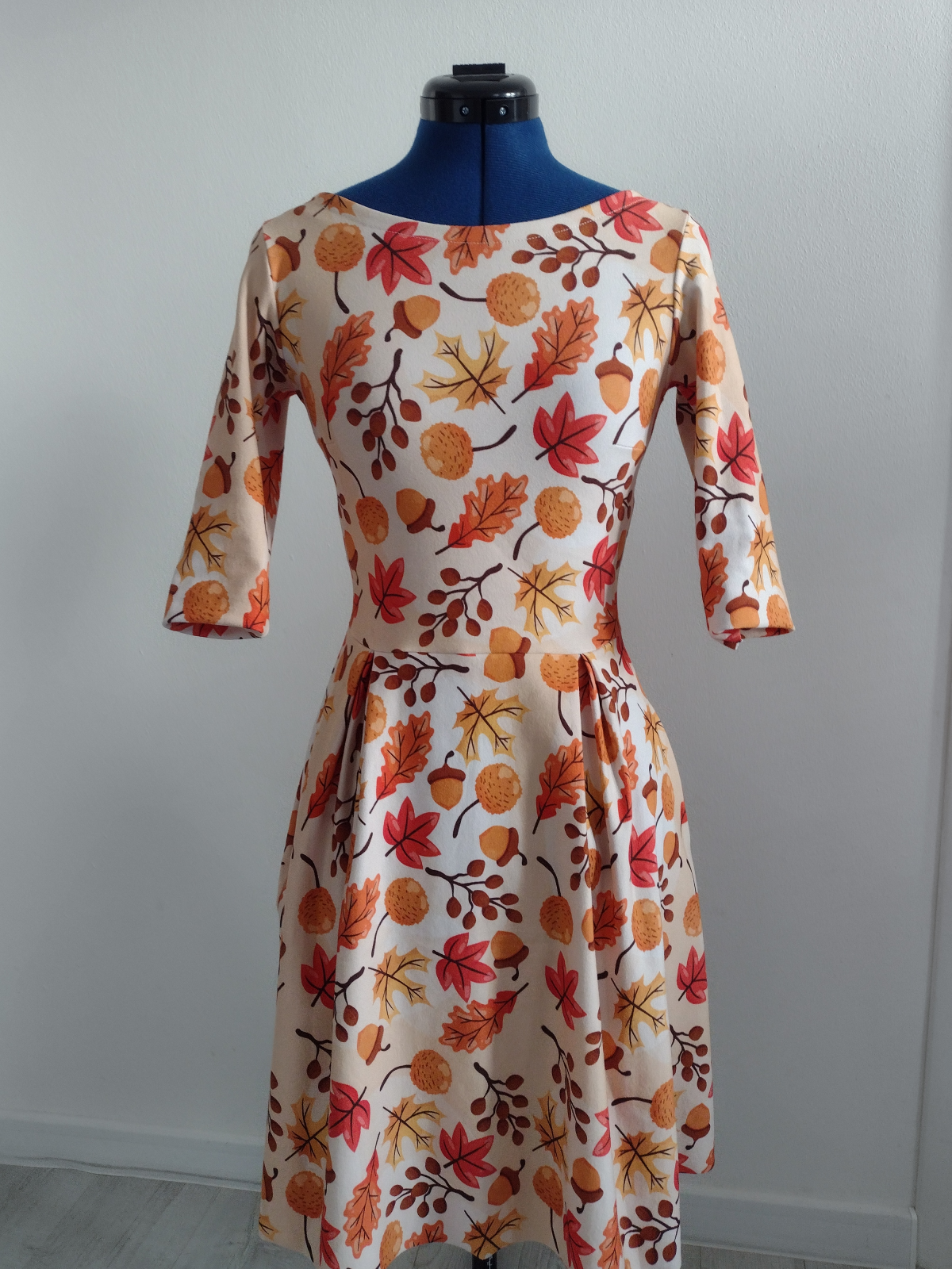 Slušivé, ženské, pohodlné a snadné na šití. Podzimní, jarní šaty se sklady a prodlouženou zadní částí sukně. Výstřih je zpracován do formy podsádky. Lze je nosit jako těhotenské (pokud by se zvýšil pas, tak i do pokročilého těhotenství :-). Střih je primárně zamýšlen pro teplákovinu s elastanem a tak by měly nejlépe sedět velikostně. Ale lze zvolit i jiný pružný materiál. Velikost je dobré odzkoušet ušitím jen vršku, jak je ukázáno ve video návodu. Koukněte do inspiračního alba, střih je úspěšně šit i z úpletu.
