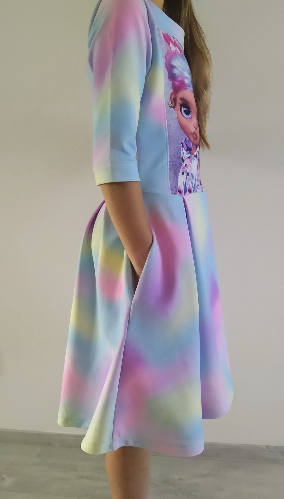 „Byla jsem z tohoto střihu nadšená a i malá je z těchto šatů. Jen jsem nedělala kapsy,jelikož by byli plné kamínků,atd... 😁“