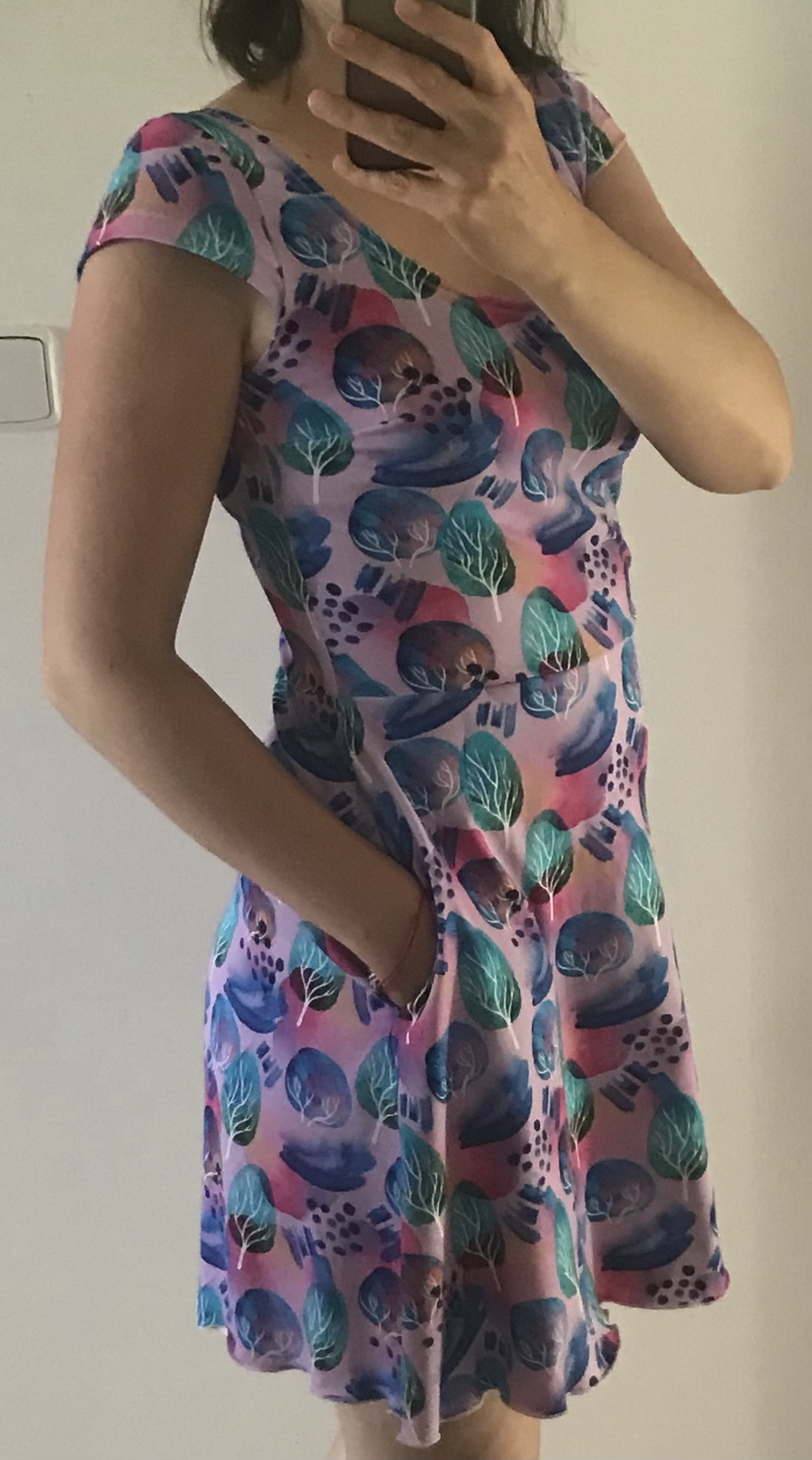 „Střih je perfektně zpracovaný včetně podrobného videonávodu. Úpravy střihu - šaty jsem šila bez kapes, sukně je prodloužena o 20cm, hloubka výstřihu na předním díle je převzatá ze zadního dílu a výstřih je lemovaný proužkem na 1/4. Určitě se nejedná o mé poslední Letníny.“
