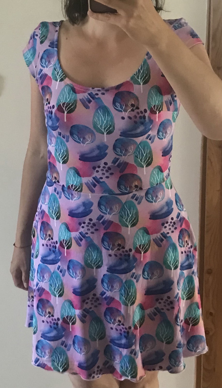 „Krásné šaty ❤️ jen se pořád asi ještě úplně nekamarádím s konfigurací na míru 🙈 navolila jsem si moc hluboký výstřih, takže neplánovaně lemován širokým proužkem na polovinu a krátká sukně, takže jsem poprvé vyzkoušela rolovací steh na OL 😊 a když už jsem byla v tom, tak jsem na rukávech vyzkoušela slepý steh, takže každé zakončení jiné, ale řekla bych, že to nevadí.“