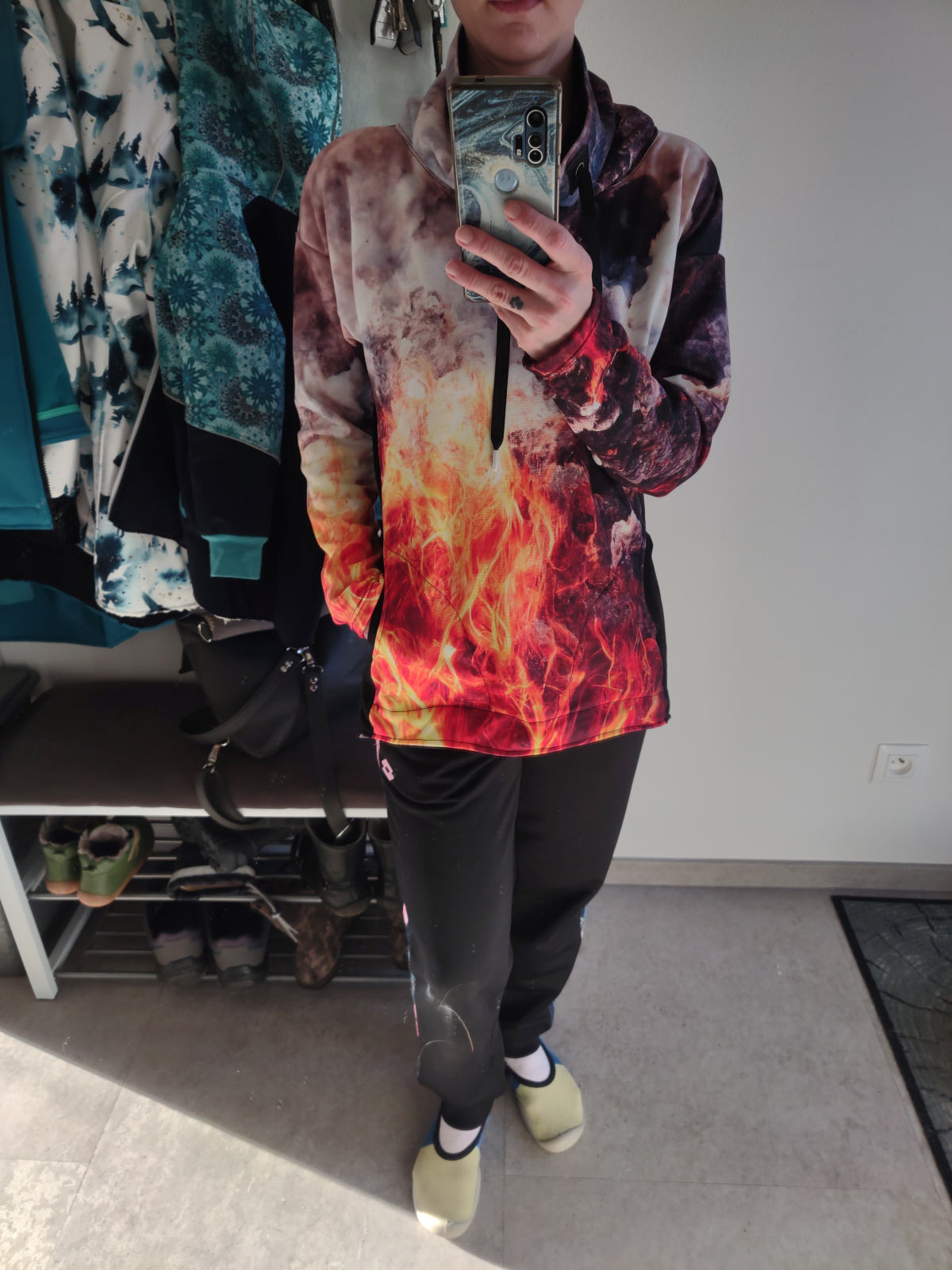 „Toto je moje třetí Marika, druhá mikina pro mne. Cítím se v ní úžasně a je příjemně teplá. Střih jsem si upravila - užší rukávy, manžety a užší průkrčník.“